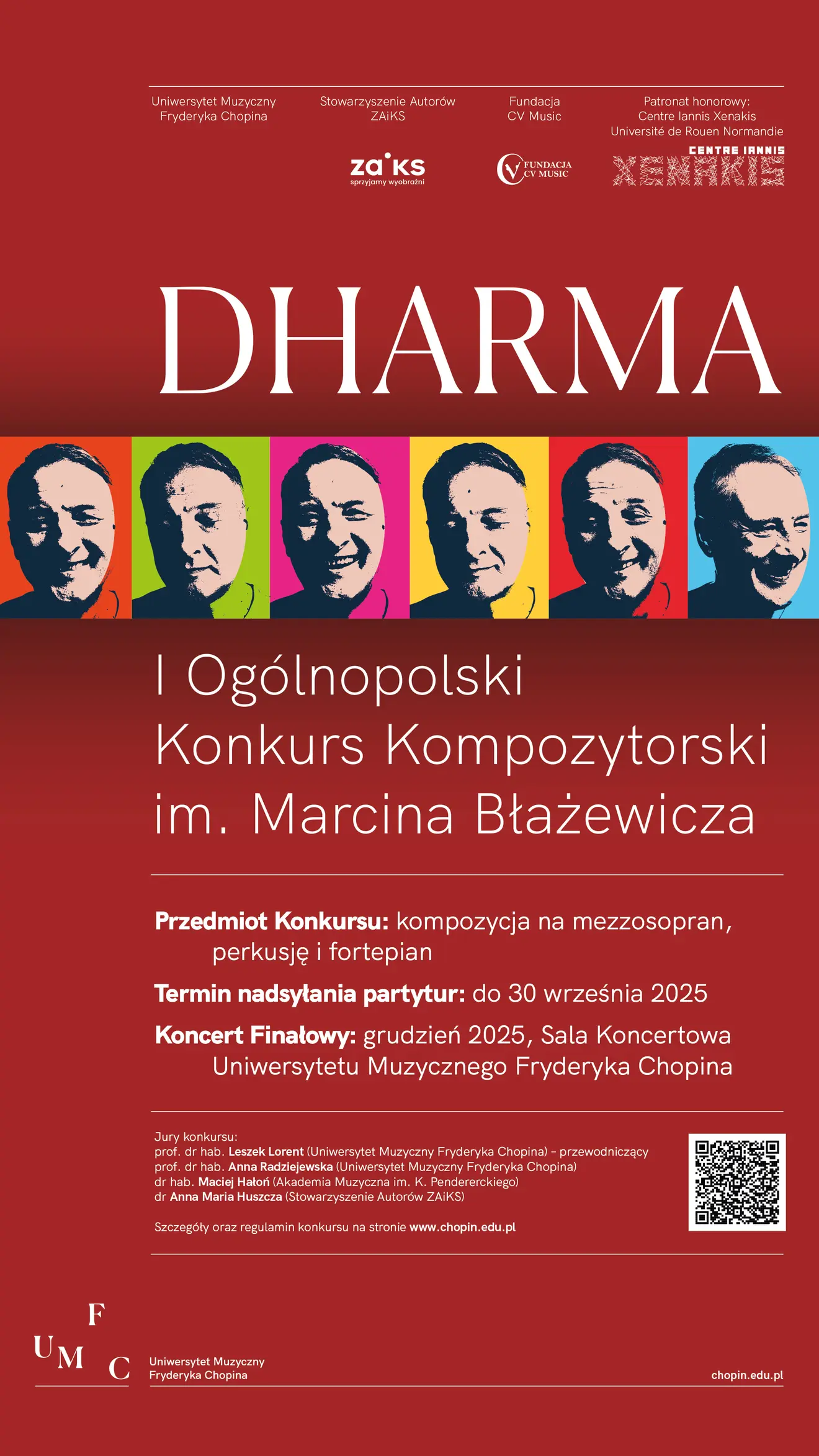 Akademia Muzyczna im. Karola Lipińskiego we Wrocławiu z przyjemnością informuje o trwającym naborze do Ogólnopolskiego Konkursu Kompozytorskiego im. Marcina Błażewicza Dharma, organizowanego cyklicznie przez Uniwersytet Muzyczny Fryderyka Chopina w Warszawie.