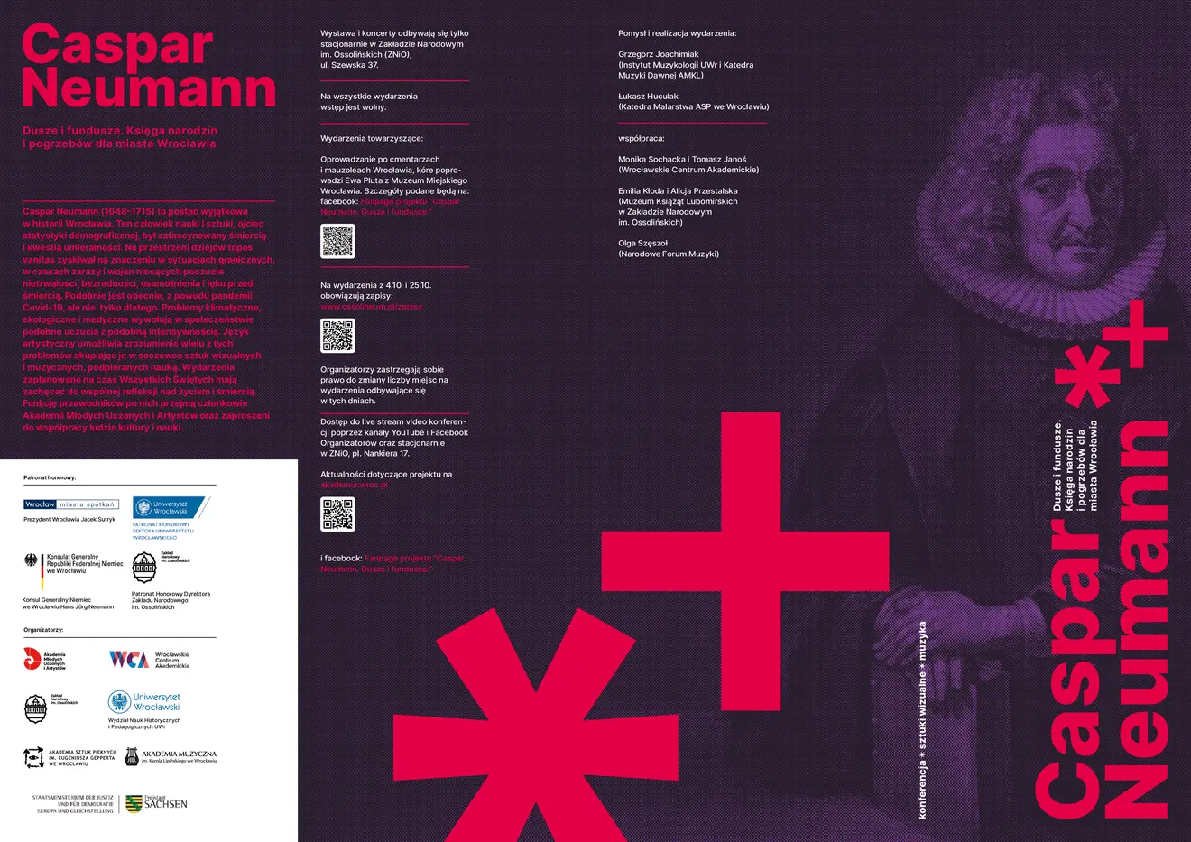 Konferencja, która odbyła się 25 października br. w sali konferencyjnej Ossolineum w formie hybrydowej (dla prelegentów stacjonarnie, dla słuchaczy online), została zrealizowana w ramach projektu: Caspar Neumann. Dusze i fundusze. Księga narodzin i pogrzebów dla miasta Wrocławia.
