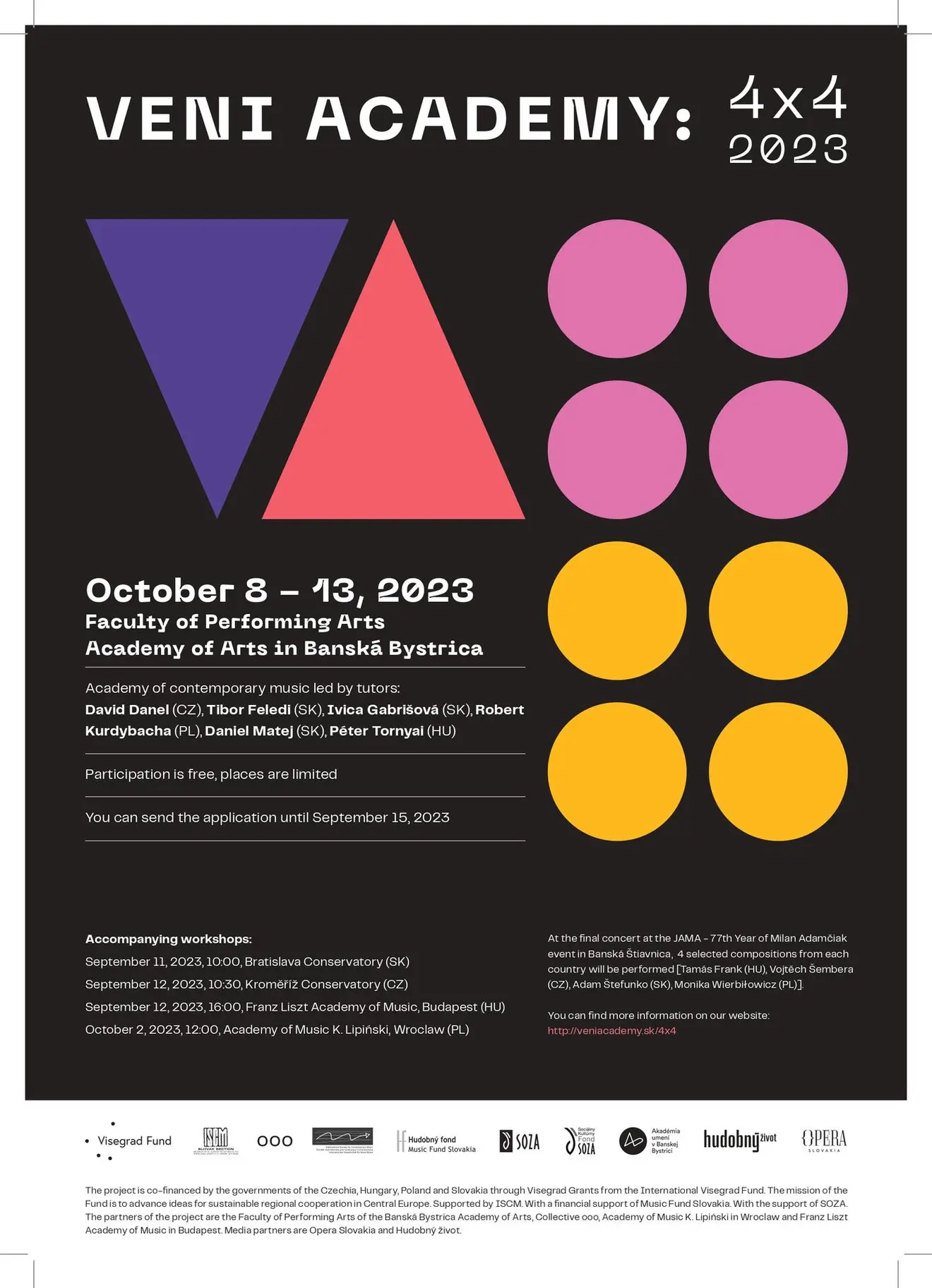 Zapisy na warsztaty VENI ACADEMY: 4x4. Więcej informacji na stronie internetowej projektu.