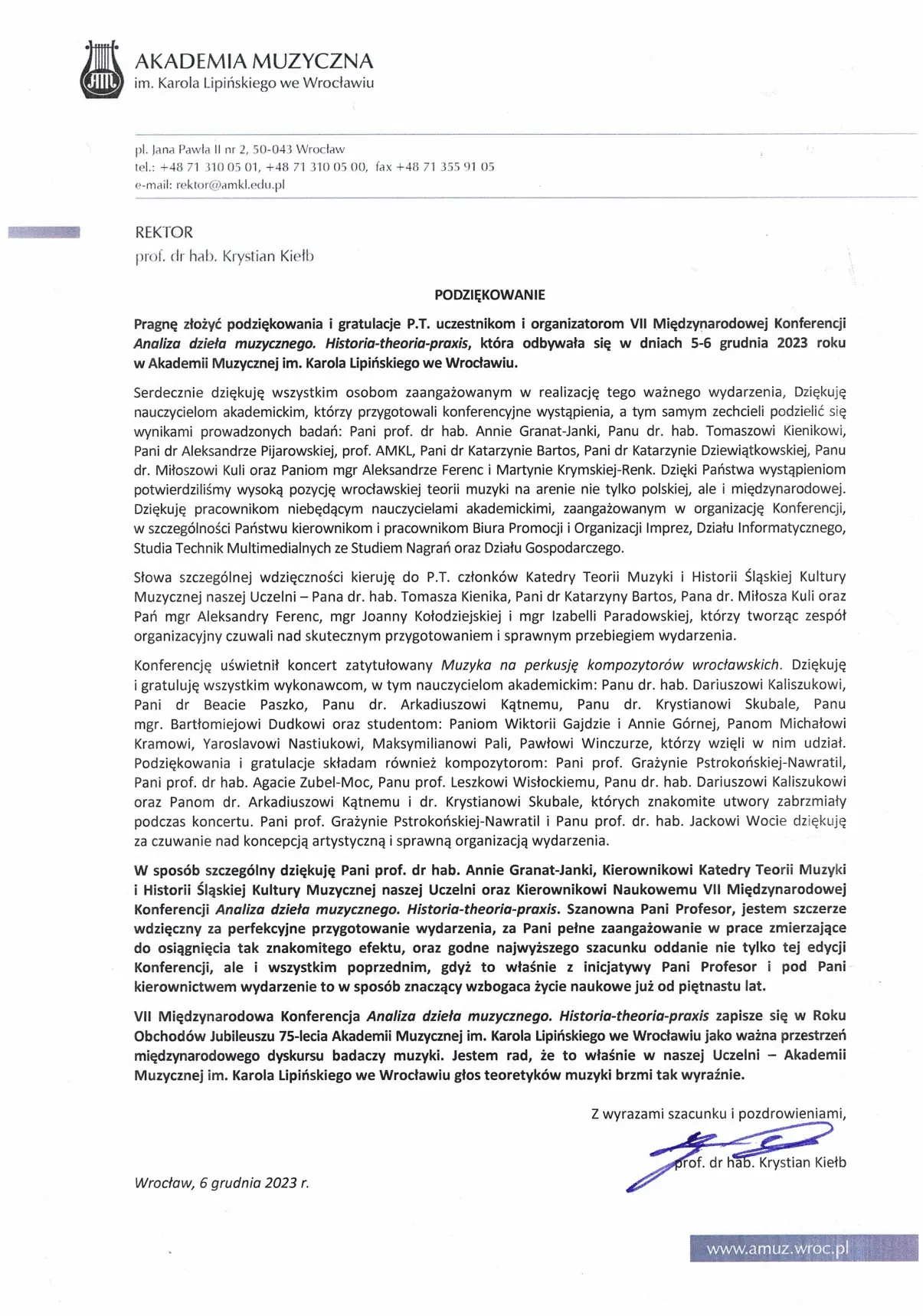 W dniach 5-6 grudnia 2023 roku odbyła się VII Międzynarodowa Konferencja „Analiza dzieła muzycznego. Historia-theoria-praxis”.