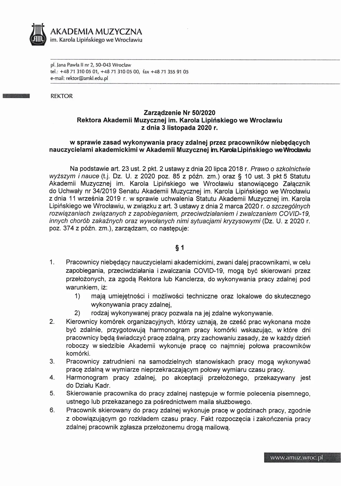 Zarządzenie nr 50/2020 z dnia 03.11.2020 r.