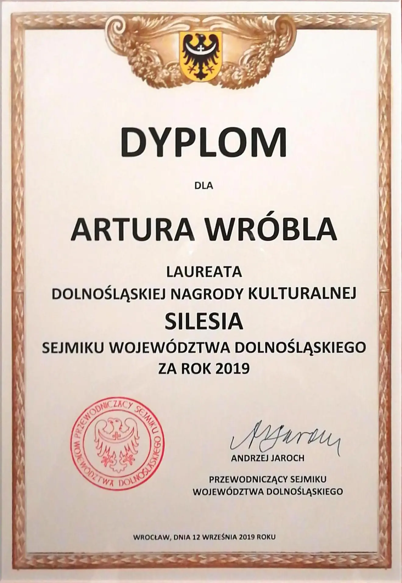 Nasz Pedagog dr hab. Artur Wróbel (Wydział Edukacji Muzycznej, Chóralistyki i Muzyki Kościelnej) został Laureatem Dolnośląskiej Nagrody Kulturalnej SILESIA za rok 2019.
