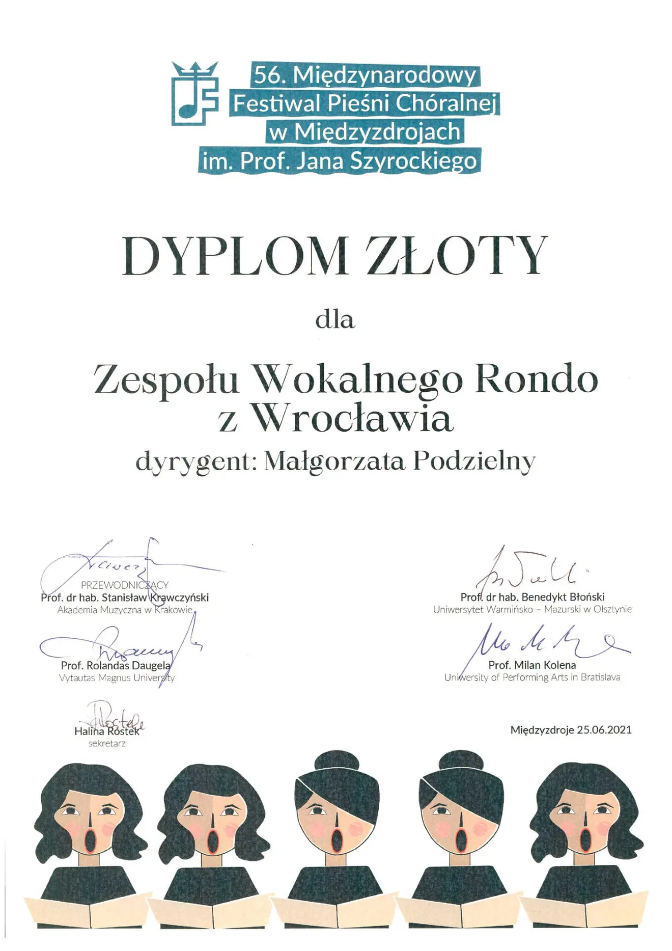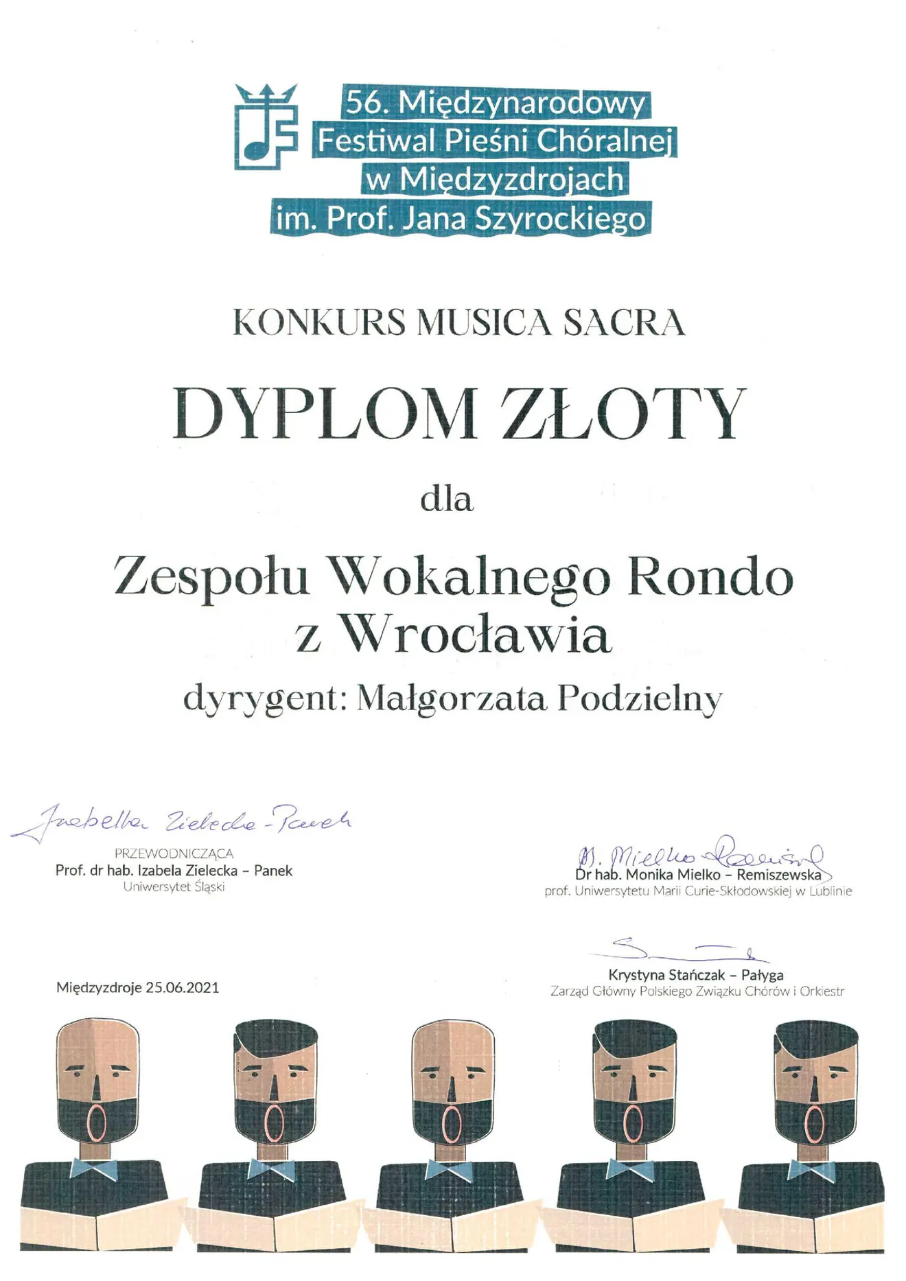 - Gold Prize w międzynarodowym konkursie The 11th World Peace Choral Festival Online Events – online – Wiedeń (22 V-12 VI 2021).