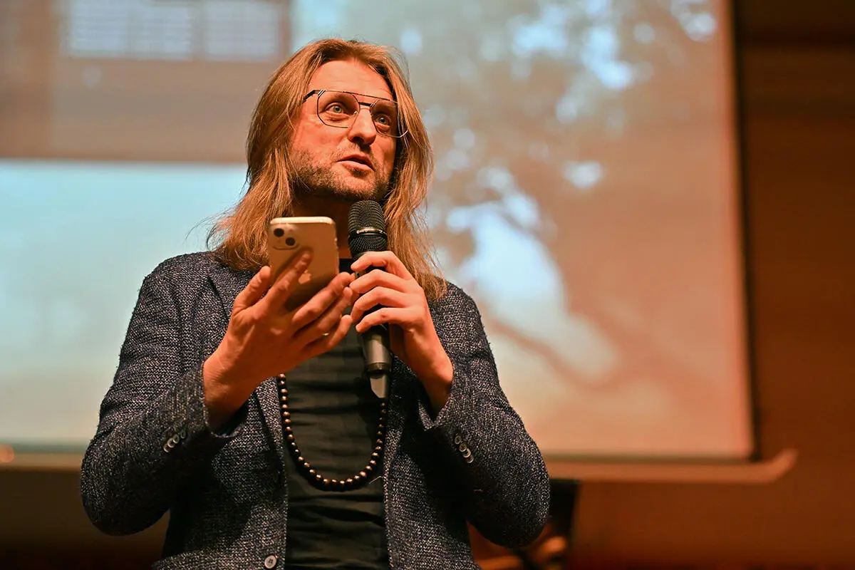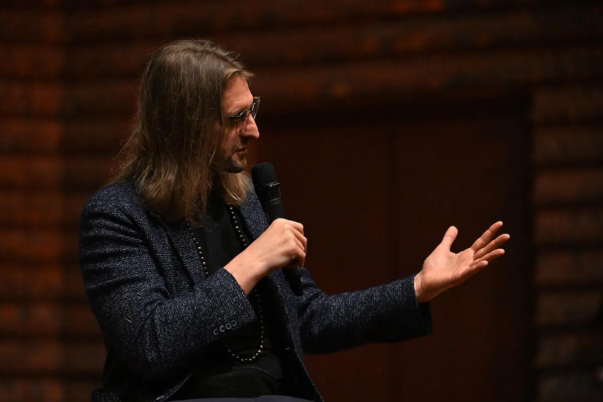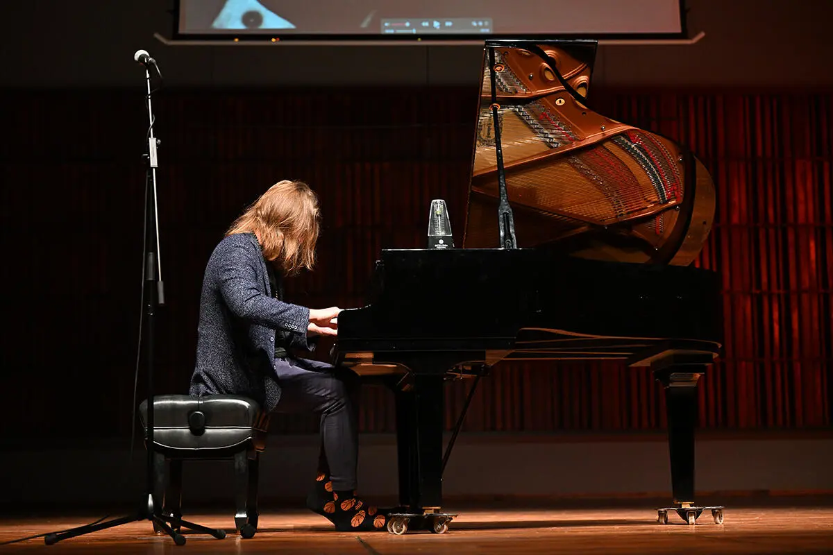 This academic year, the open meeting on March 5, 2024, was led by Leszek Możdżer. The composer explained to students what it's like to work on a film set, prepare a film soundtrack, collaborate with actors, and the composition process.