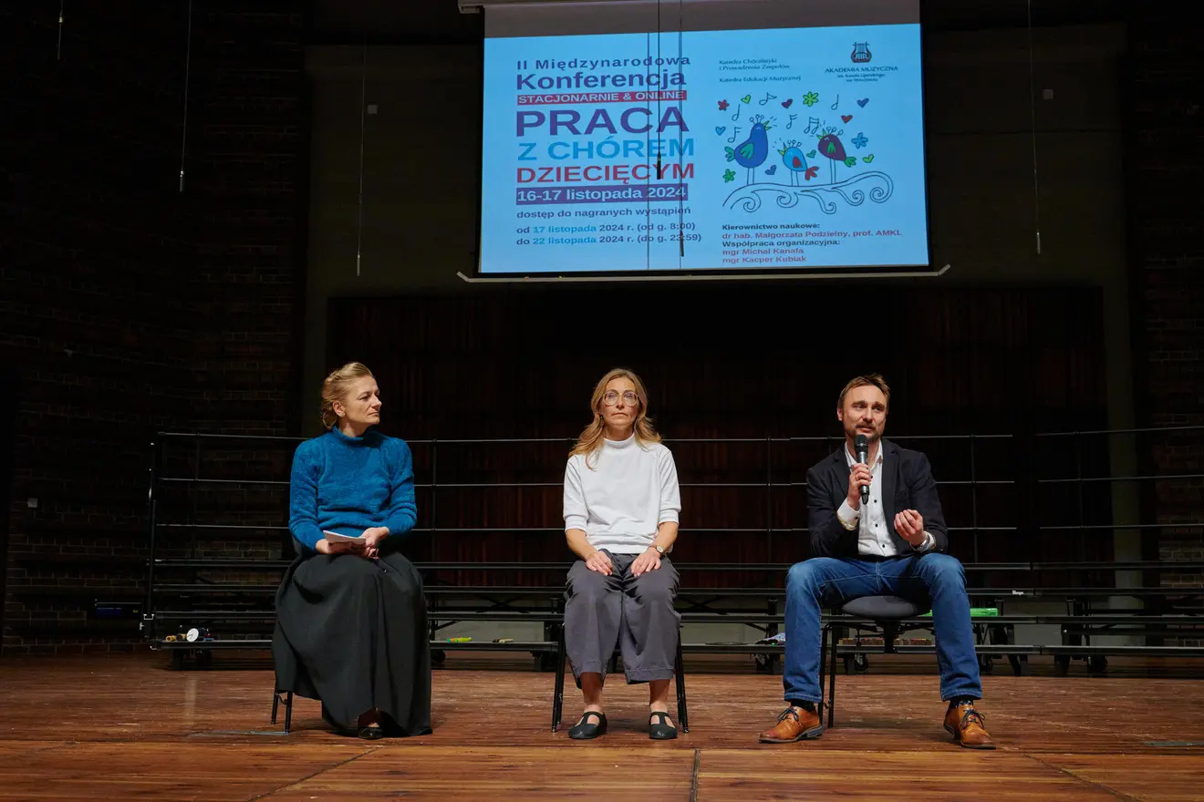 The second day began with practical workshops by Angelika Wolf, M.A., and an inspiring lecture by Marek Raczyński, M.A., on the choir as a mechanism and an organism. Malina Sarnowska's presentation, drawing on the Orff-Schulwerk concept, provided an excellent opportunity to learn about games and exercises that stimulate the imagination of young choristers. The conference concluded with a lively discussion between participants and the speakers.