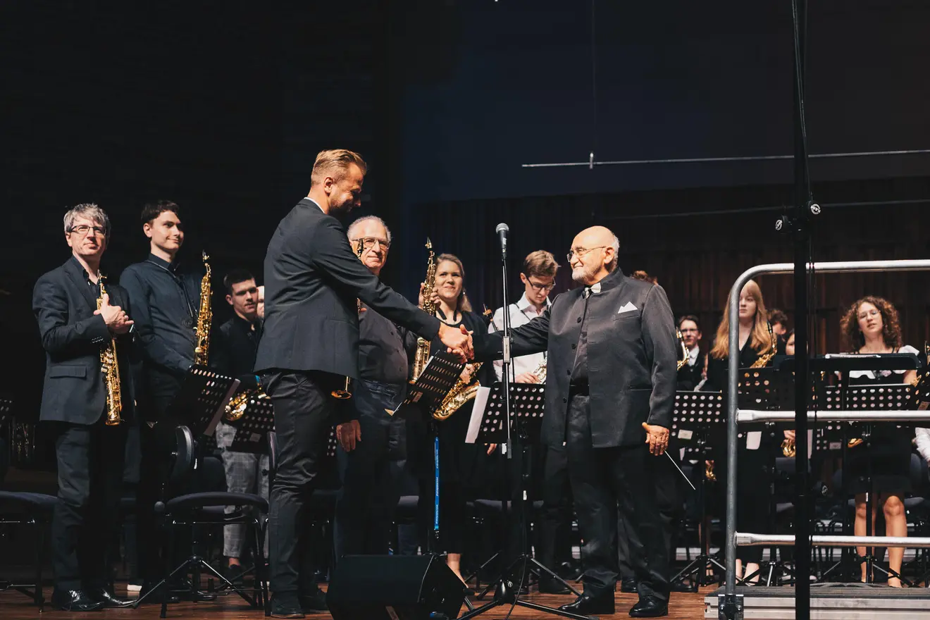On May 19-20, our University hosted distinguished figures from the saxophonist world as part of the European Saxophone Forum. A unique event of the Forum was the "Saxophone Orchestra" project, led by Maestro Lev Arstein, in which all Forum participants participated. The saxophone orchestra's performance culminated the final concert, which took place on May 20 at 4:00 PM in the AMKL Concert Hall. The Academic Wind Orchestra, conducted by Dr. Piotr Bugaj, also performed at the concert.
