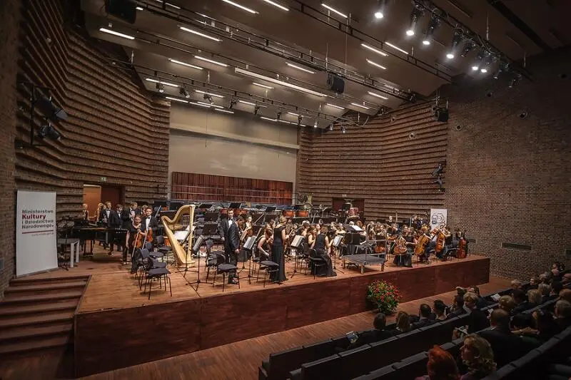 The ceremonial inauguration of the concert hall was honored by a Special Jubilee Concert to celebrate the 65th anniversary of the Wrocław Academy of Music, featuring Maestro Marek Pijarowski, soloists Joanna Zawartko, Agnieszka Rehlis, Jędrzej Tomczyk, and Stavros Chatzipentidis, the Academic Symphony Orchestra, the Feichtinum Choir, and the Academy of Music Big Band.