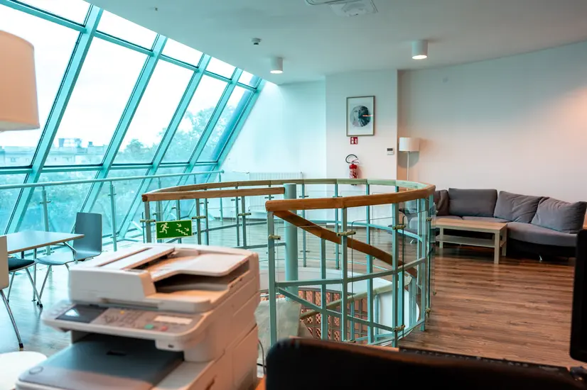 Building F houses the Academy's administration offices (ground floor), rooms of the Vocal Faculty (1st floor), the Professor Włodzimierz Obidowicz Hall, and the Foreign Language Study Centre. On the 3rd floor, there are guest rooms.