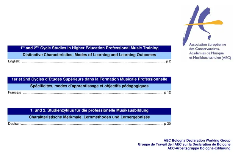 AEC Learning outcomes for 1st and 2nd Cycle Studies in Higher Education Professional Music Training