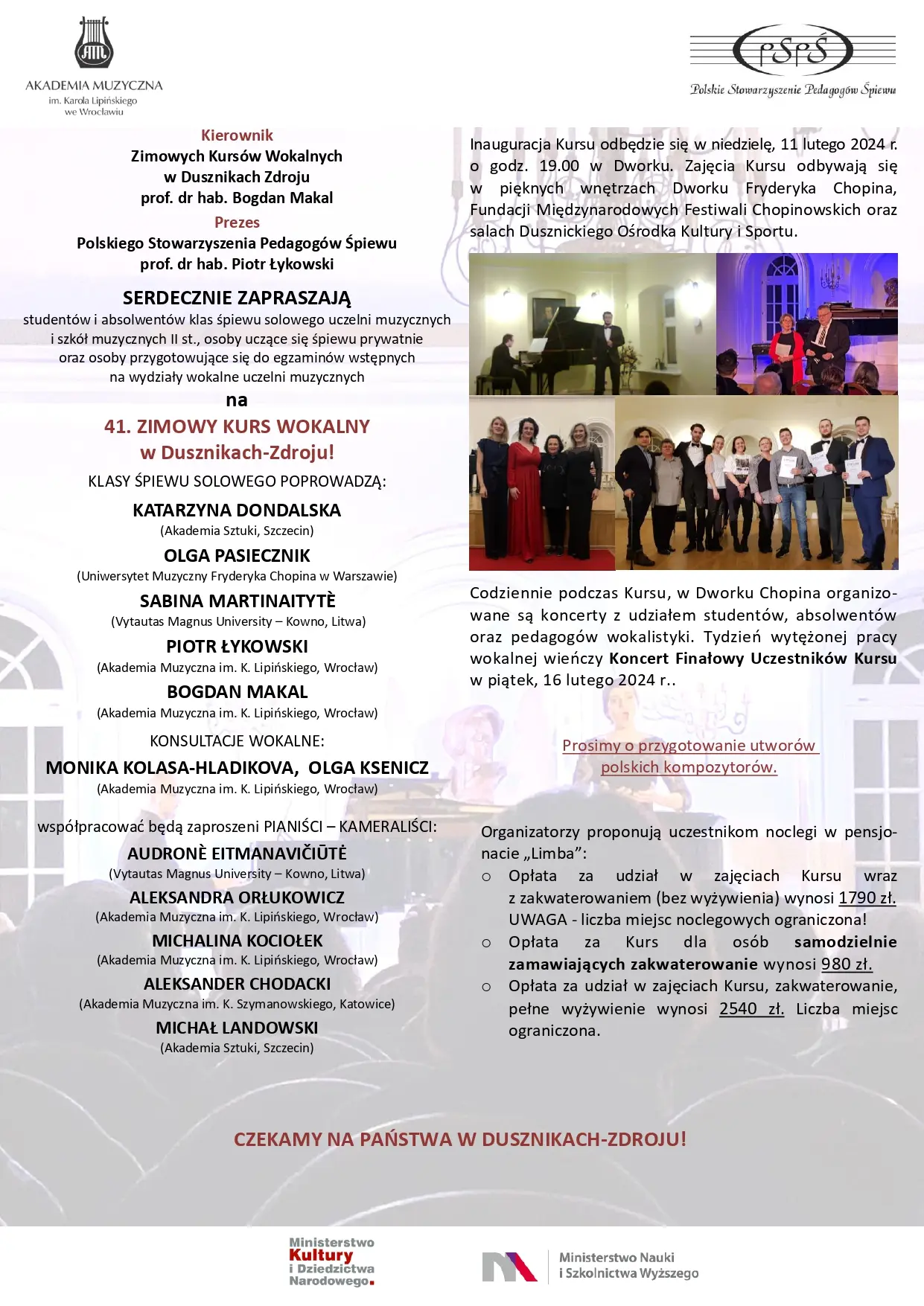 41. Zimowy Kurs Wokalny w Dusznikach Zdroju
