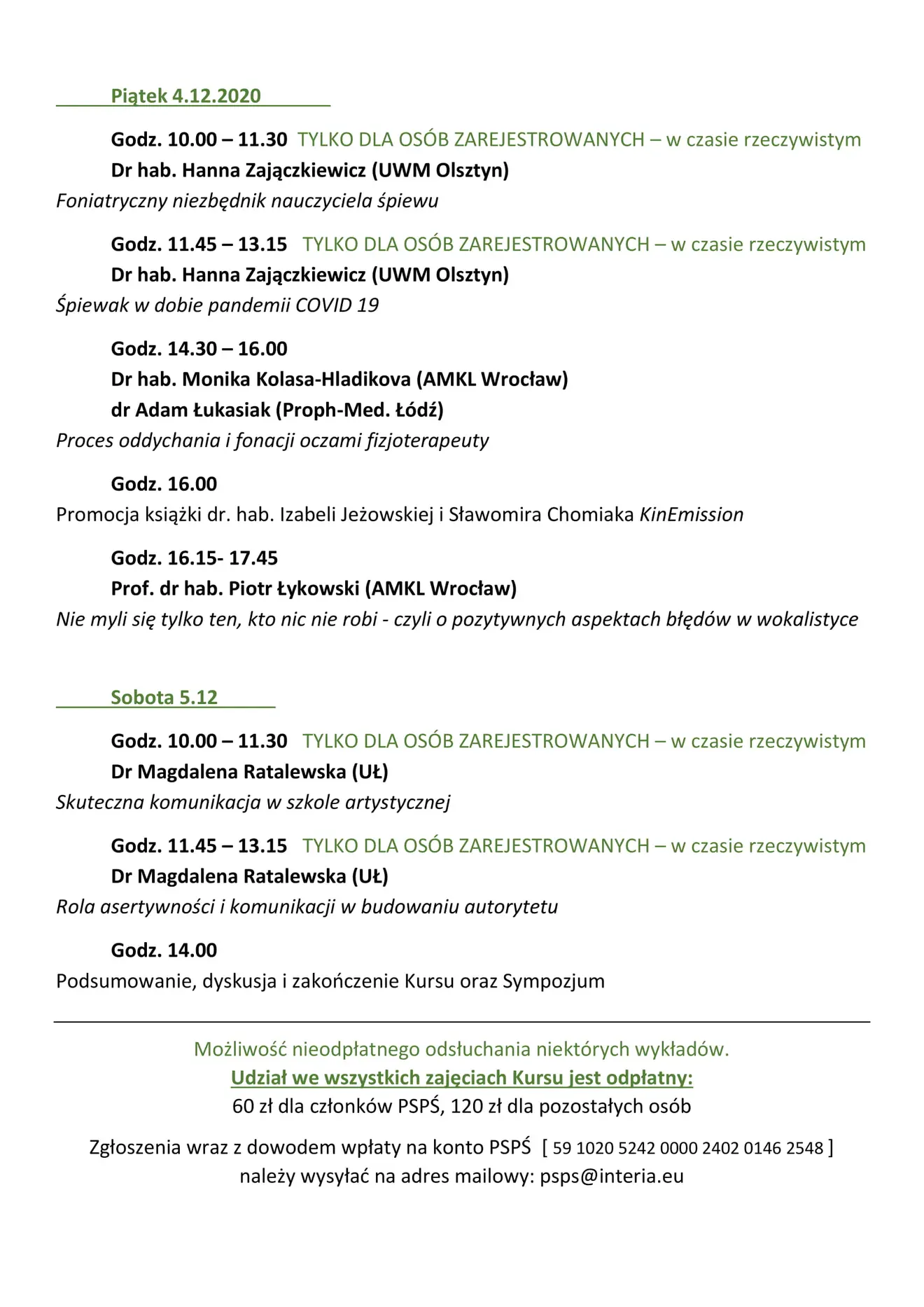 68. Kurs Pedagogiki Wokalnej oraz 31. Sympozjum Naukowe