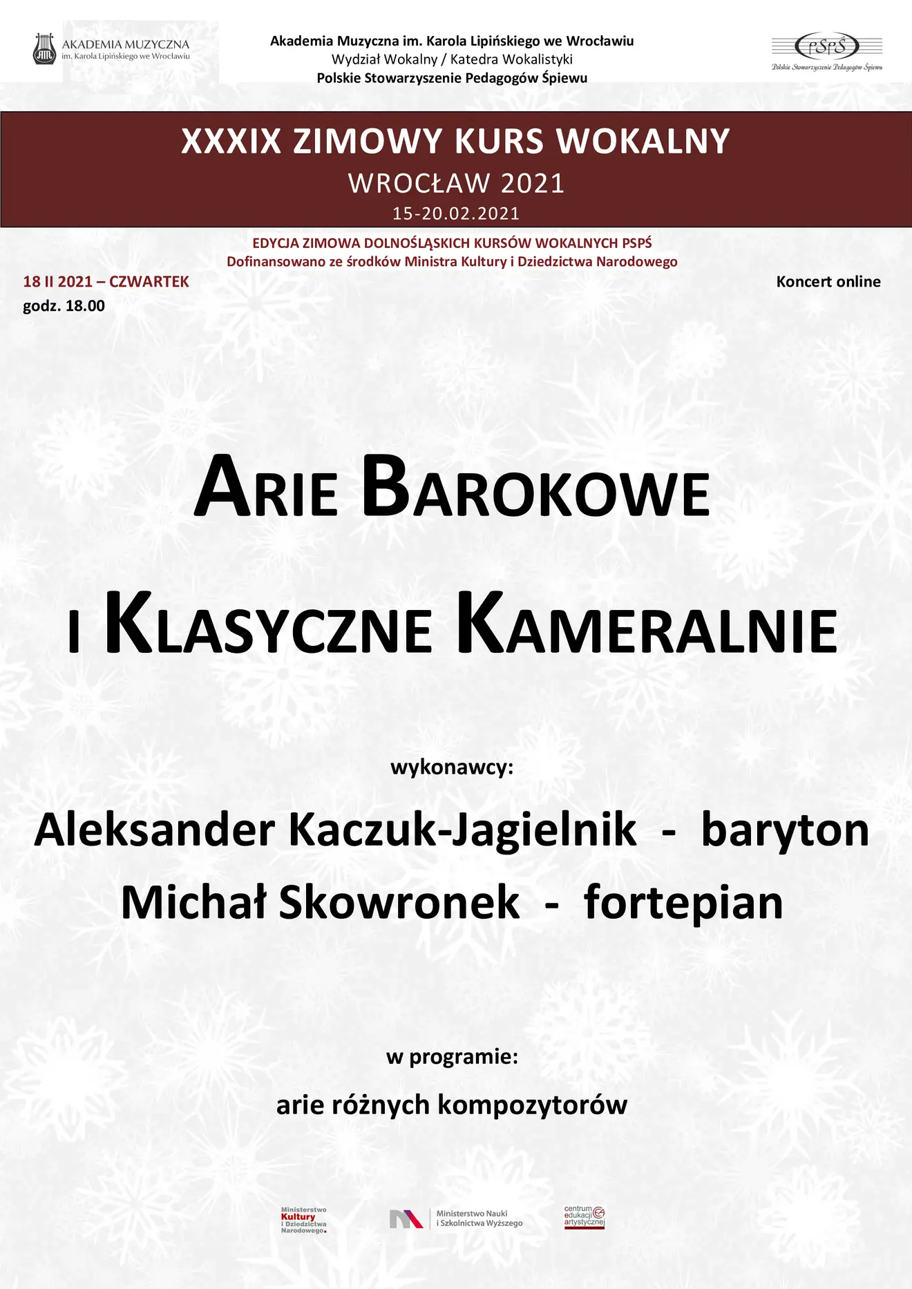 Arie barokowe i klasyczne kameralnie - koncert w ramach XXXIX Zimowego Kursu Wokalnego