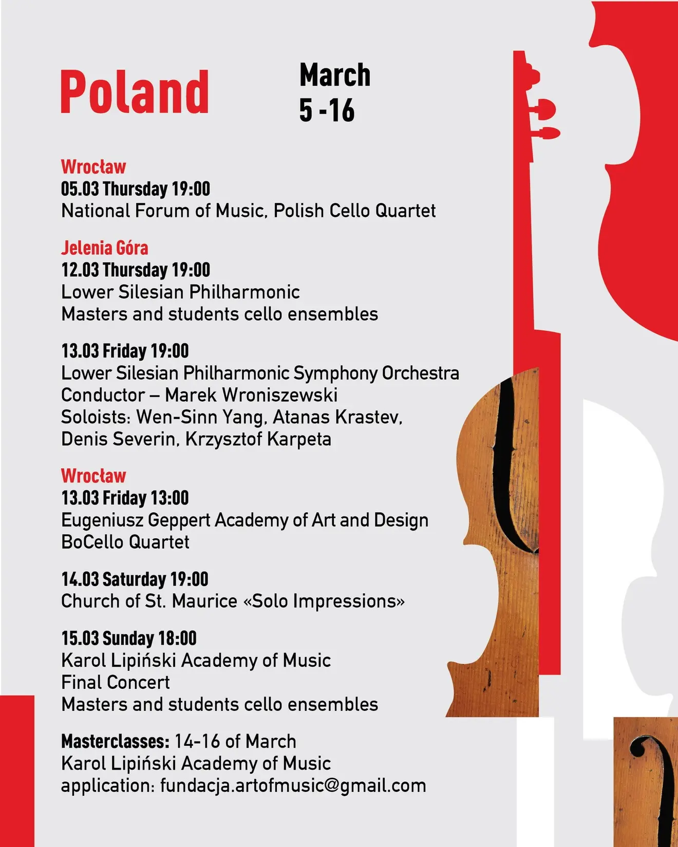 W dniach 5-16 marca 2026 odbędzie się Art Cello Festival. Więcej informacji wkrótce.