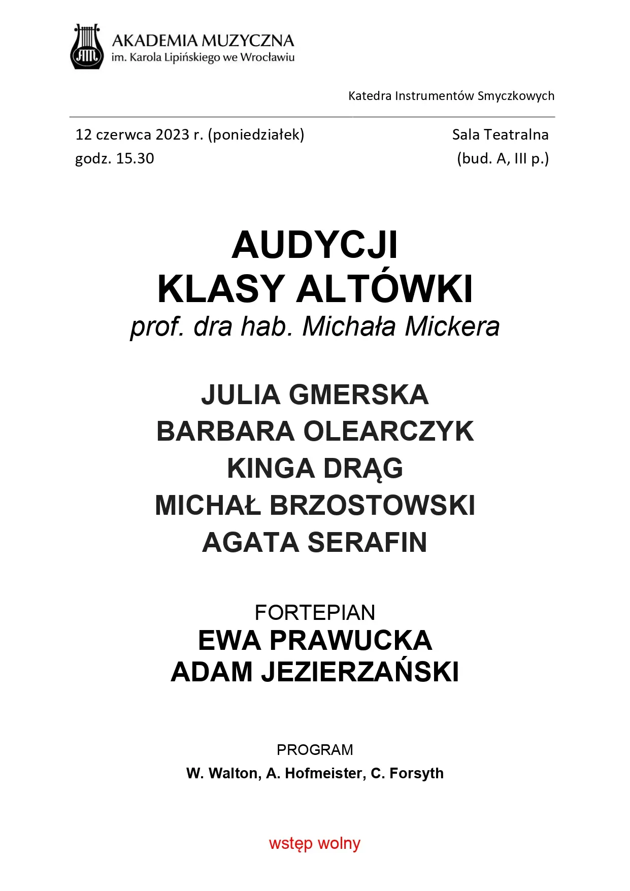 Audycji klasy altówki prof. dra hab. Michała Mickera