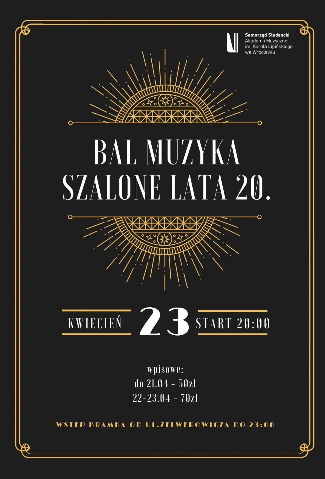 23.04.2025The Bal Muzyka will take place on April 23, 2025, at 8:00 p.m. in the foyer of Building E of the Karol Lipiński Academy of Music in Wrocław.