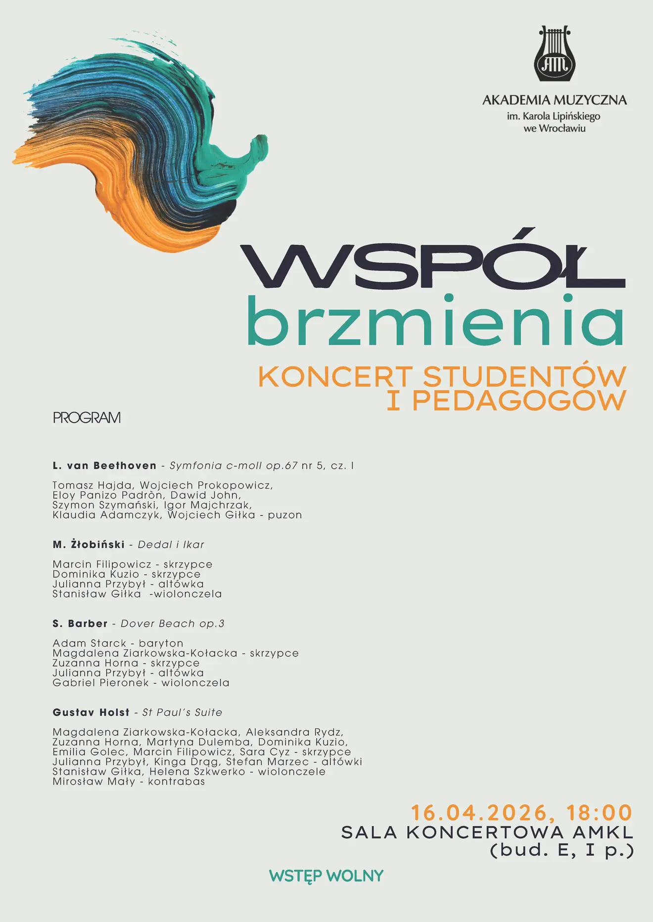 Magdalena Ziarkowska-Kołacka, Aleksandra Rydz, Zuzanna Horna, Martyna Dulemba, Dominika Kuzio, Emilia Golec, Marcin Filipowicz, Sara Cyz – violin