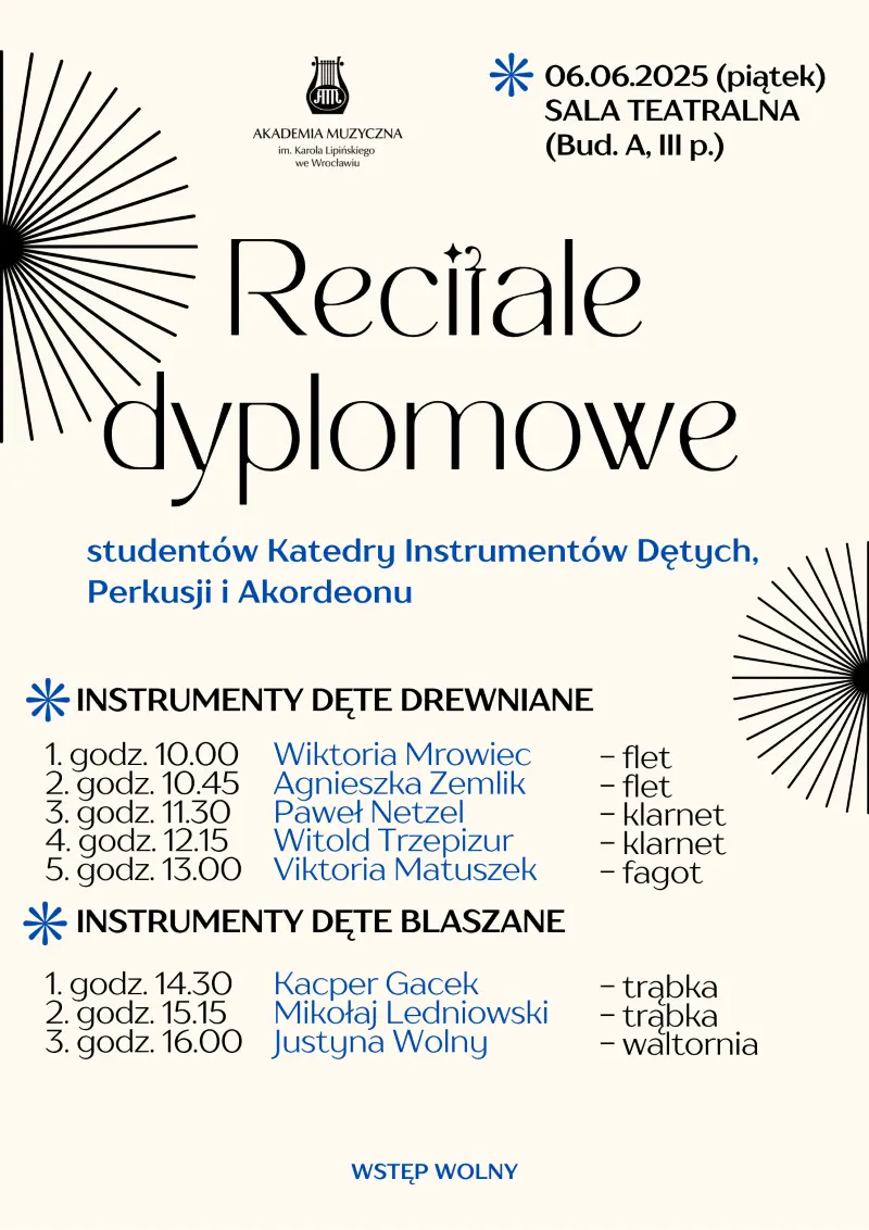 Diploma Recitals of Students from the Department of Wind, Percussion and Accordion Instruments