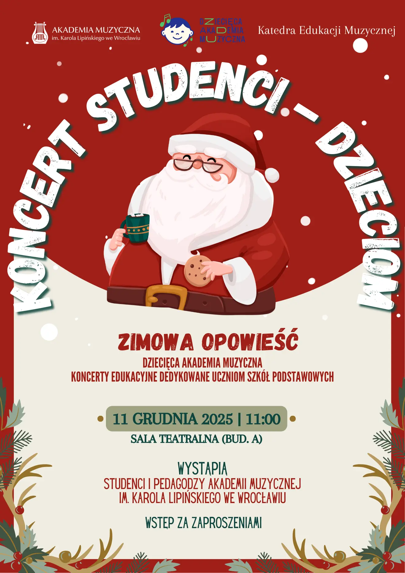 Free admissionOn 11 December 2025, as part of the Children's Music Academy, there will be a concert entitled Music-making on the Piano, Students for Children: A Winter's Tale. Students and teachers from the Karol Lipiński Academy of Music in Wrocław will perform.