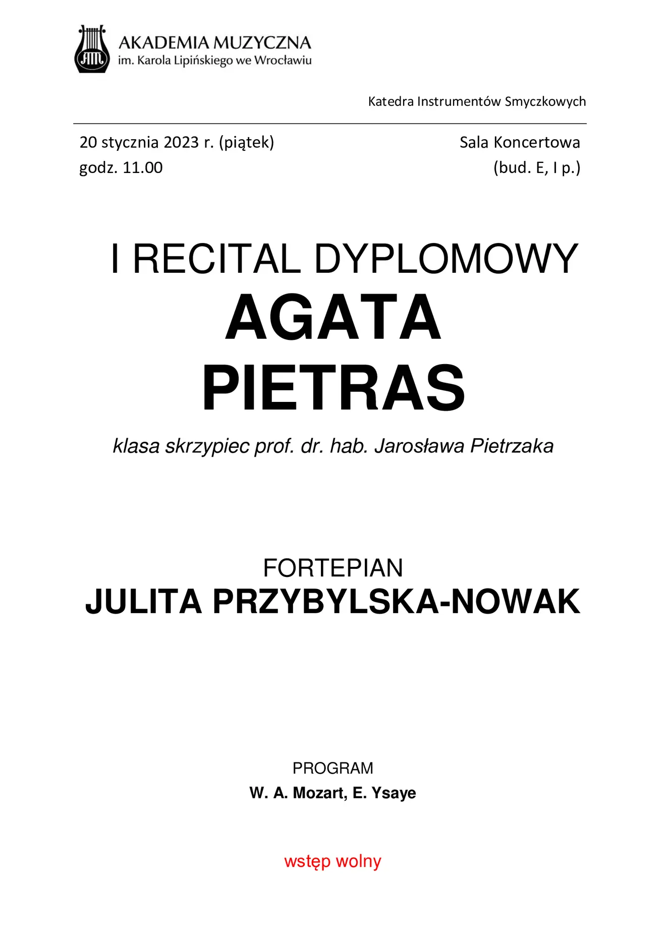 I recital dyplomowy Agaty Pietras