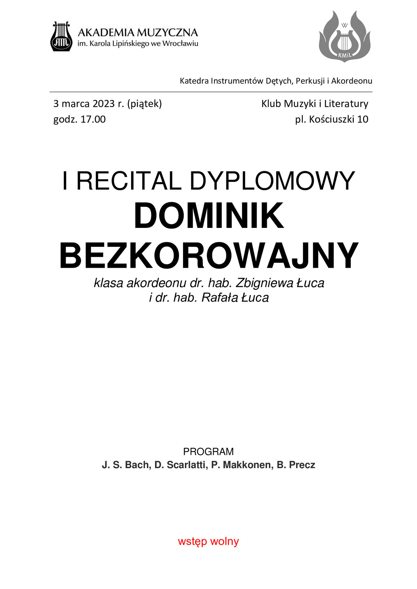 I recital dyplomowy Dominik Bezkorowajny
