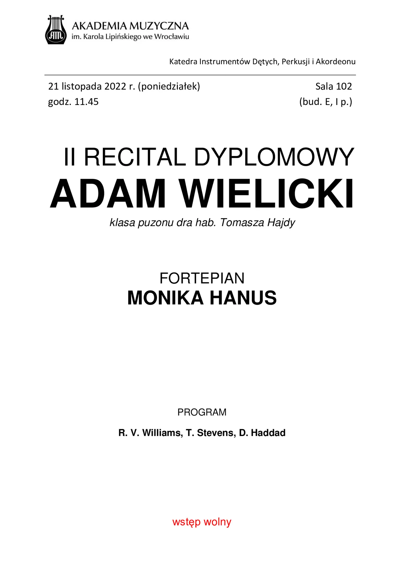 II recital dyplomowy Adama Wielickiego