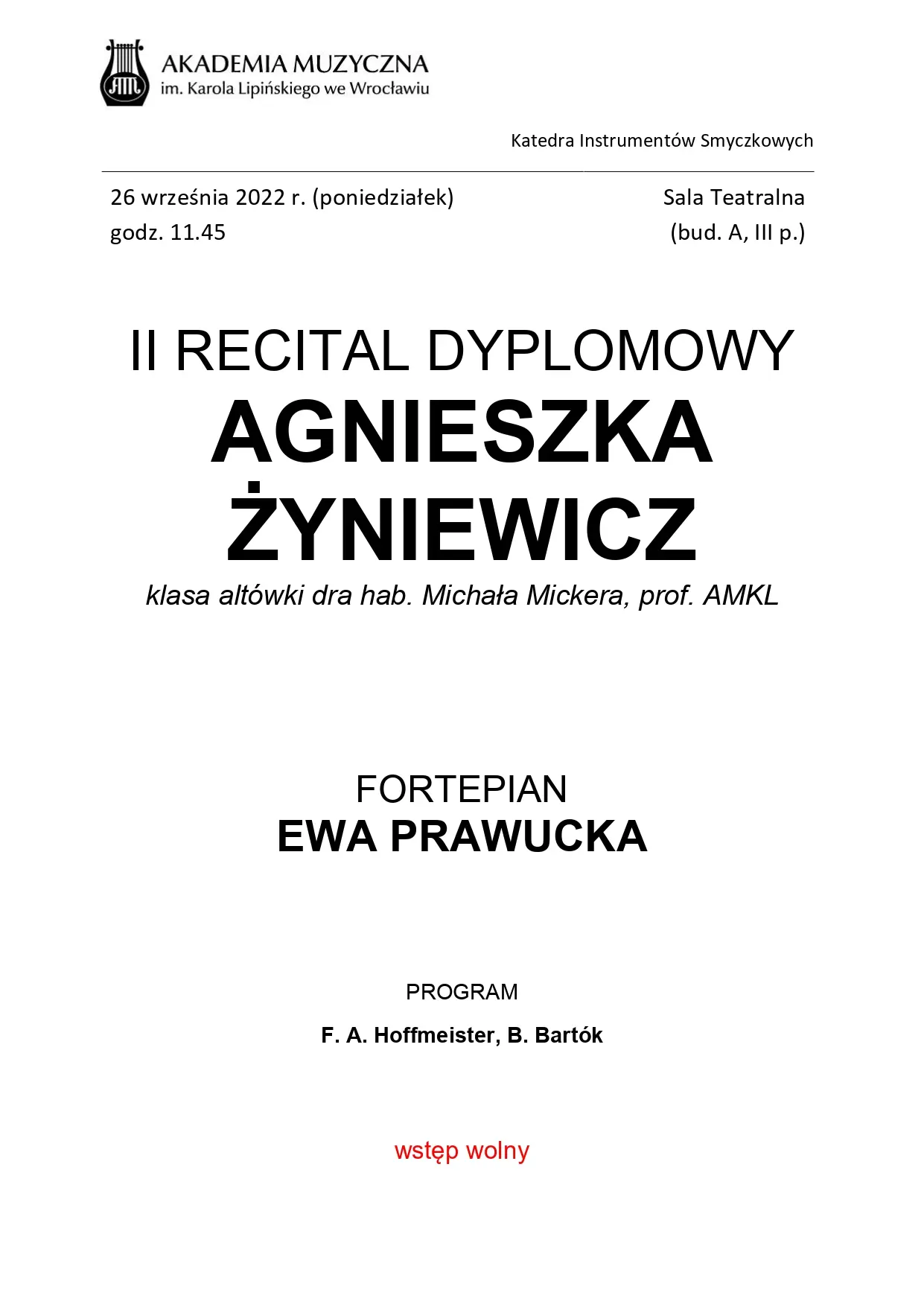 II Recital dyplomowy Agnieszka Żyniewicz