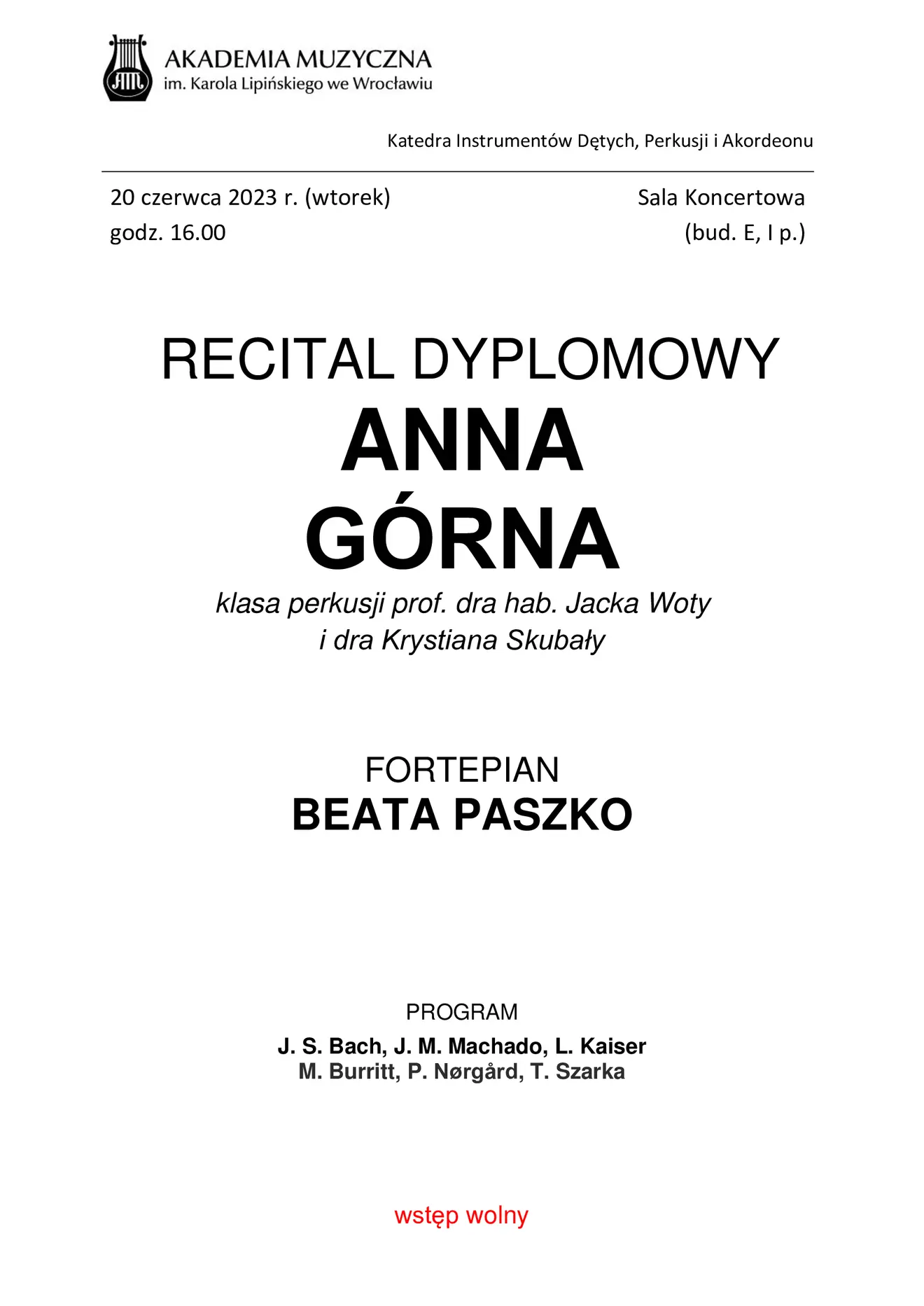 II Recital dyplomowy Anna Górna