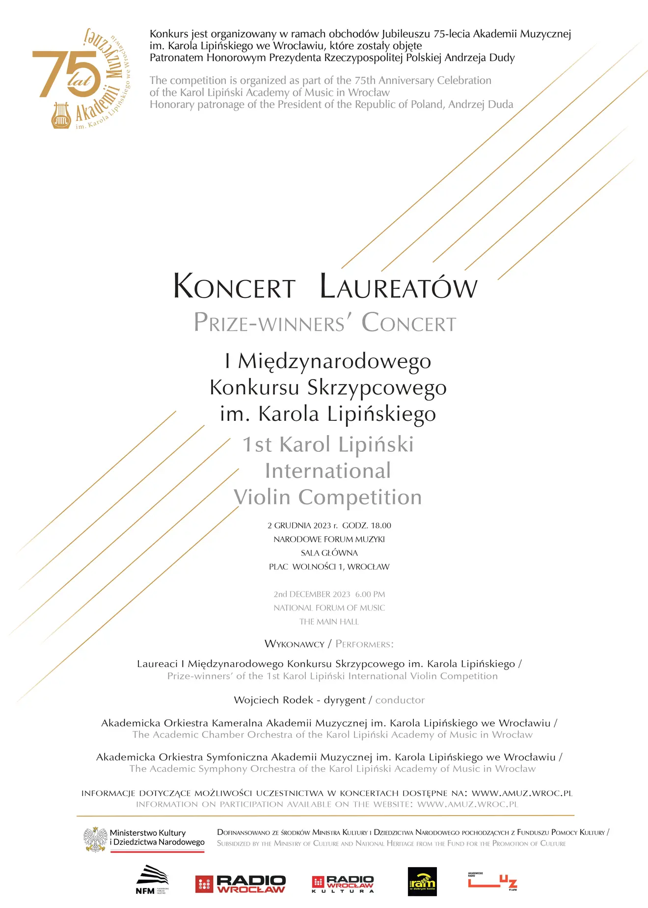Więcej informacji o Konkursie: https://amuz.wroc.pl/i-miedzynarodowy-konkurs-skrzypcowy-im-karola-lipinskiego-9201