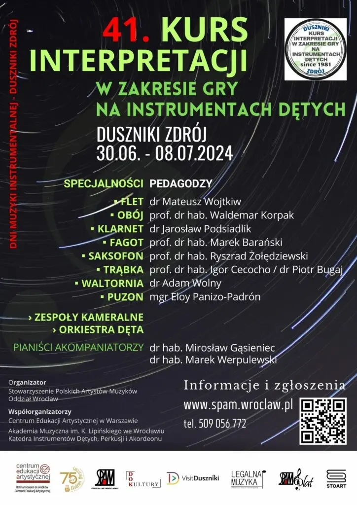 30.06 - 08.07.2024W dniach 30 czerwca – 08 lipca 2024 r. odbył się 41. Kurs Interpretacji w Zakresie Gry na Instrumentach Dętych realizowany w ramach Dni Muzyki Instrumentalnej w Dusznikach-Zdroju.