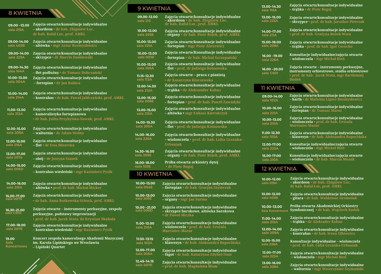 Please note that on April 11, as part of the Vocal Department Open Days, individual singing consultations will be held by Prof. Dr. Hab. Piotr Łykowski (substituting for Mgr Agata Chodorek) in Room 101F, from 5:00 p.m. to 7:00 p.m.