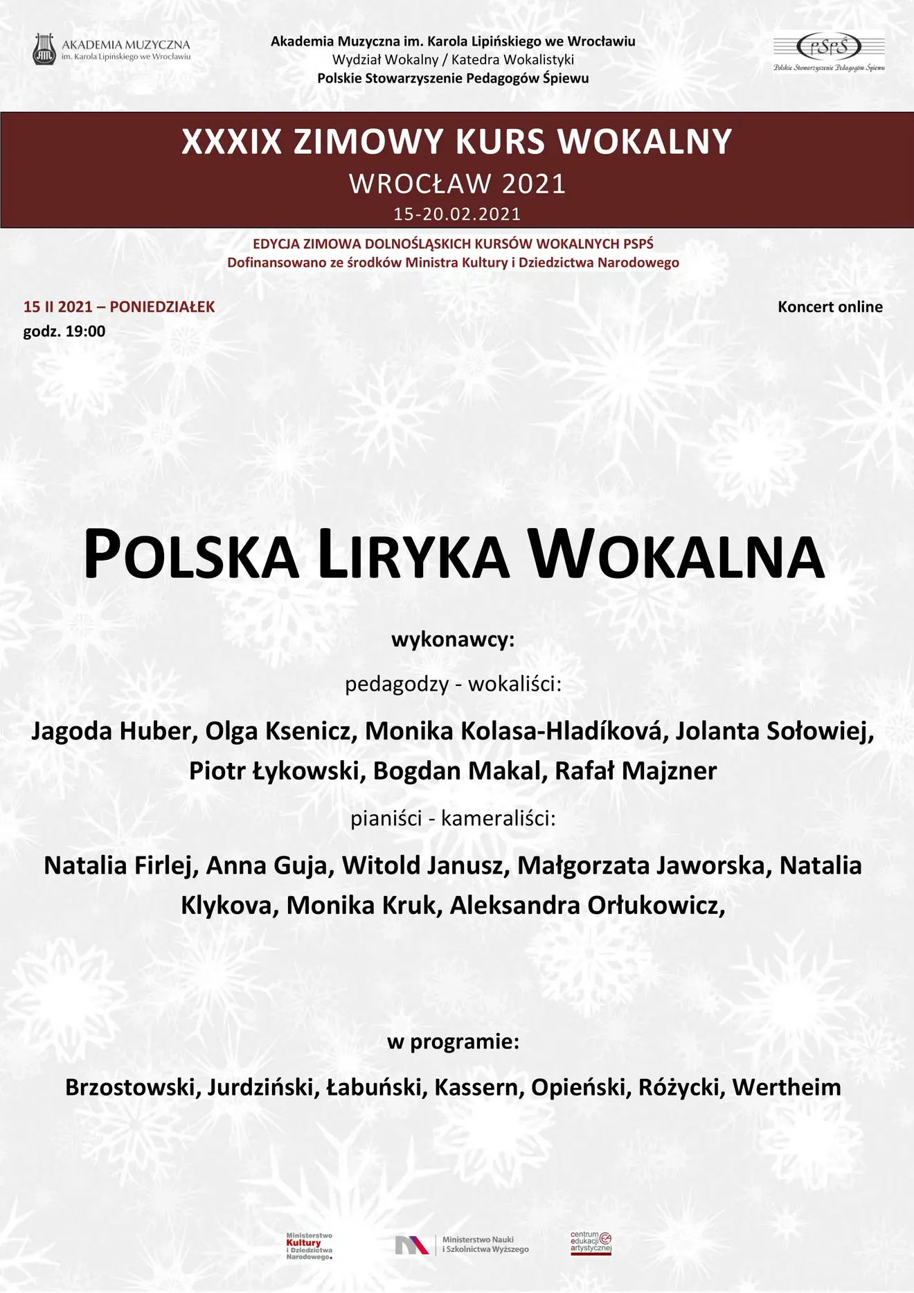 Polska liryka wokalna - koncert w ramach XXXIX Zimowego Kursu Wokalnego