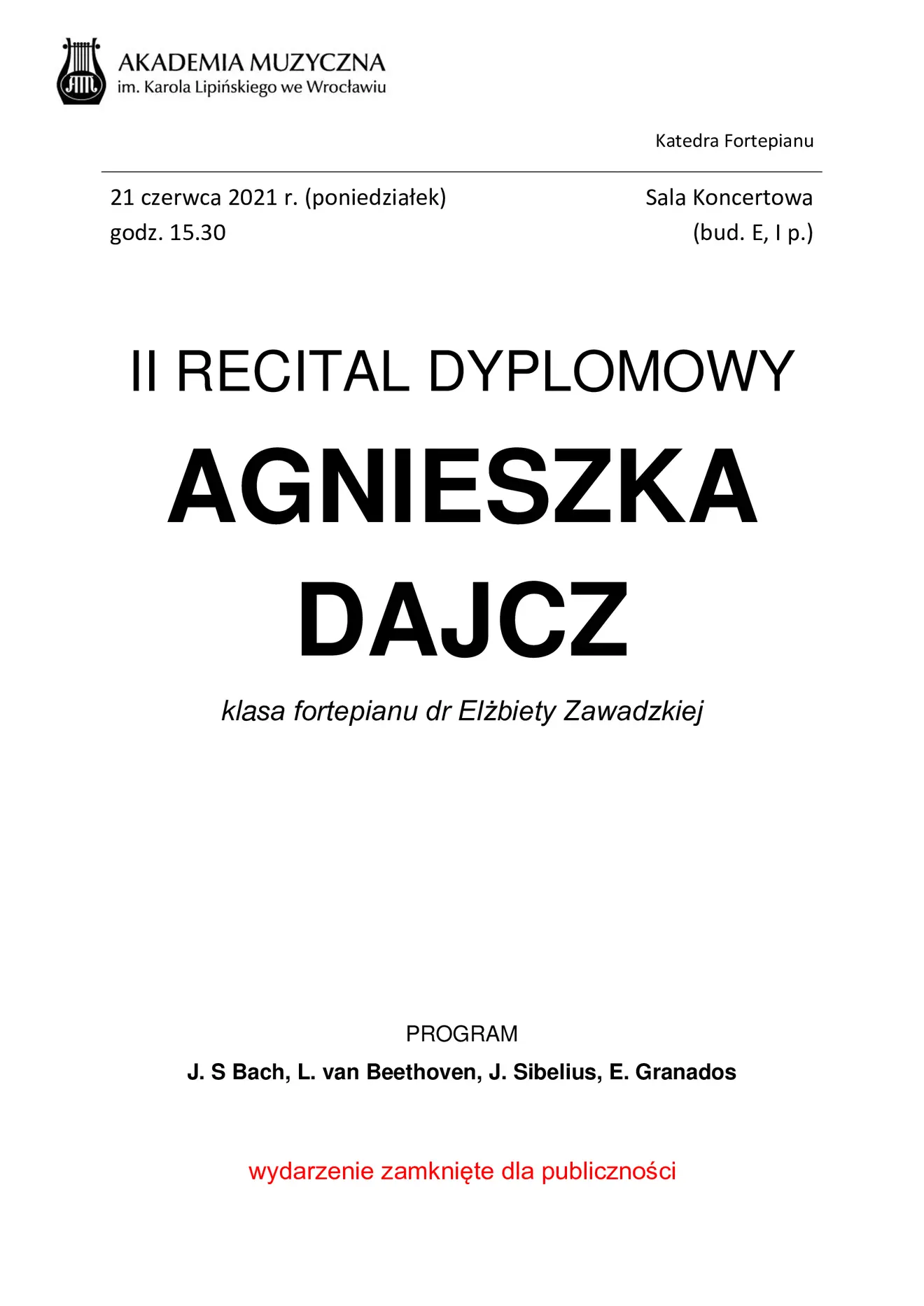 Recital dyplomowy Agnieszki Dajcz