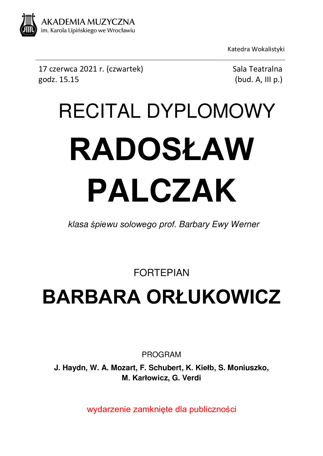 Recital dyplomowy Radosława Palczaka