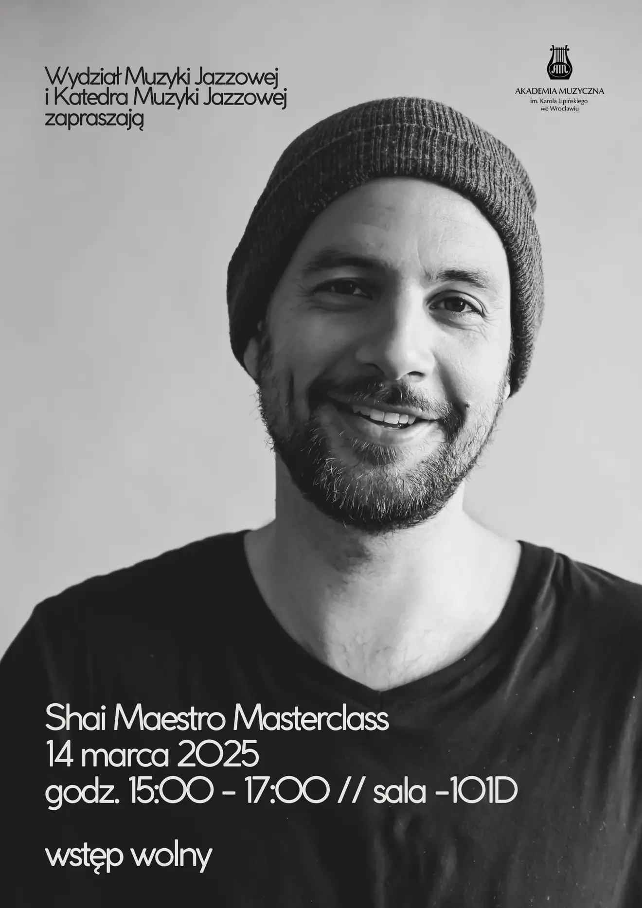 14.03.2025On Friday, March 14, 2025, from 3:00 p.m. to 5:00 p.m., the “Shai Maestro Masterclass” jazz workshop was held in Room -101D at the Karol Lipiński Academy of Music in Wrocław.