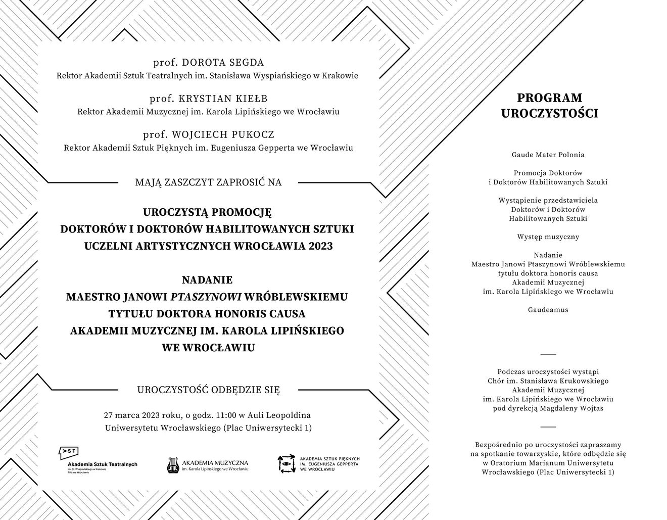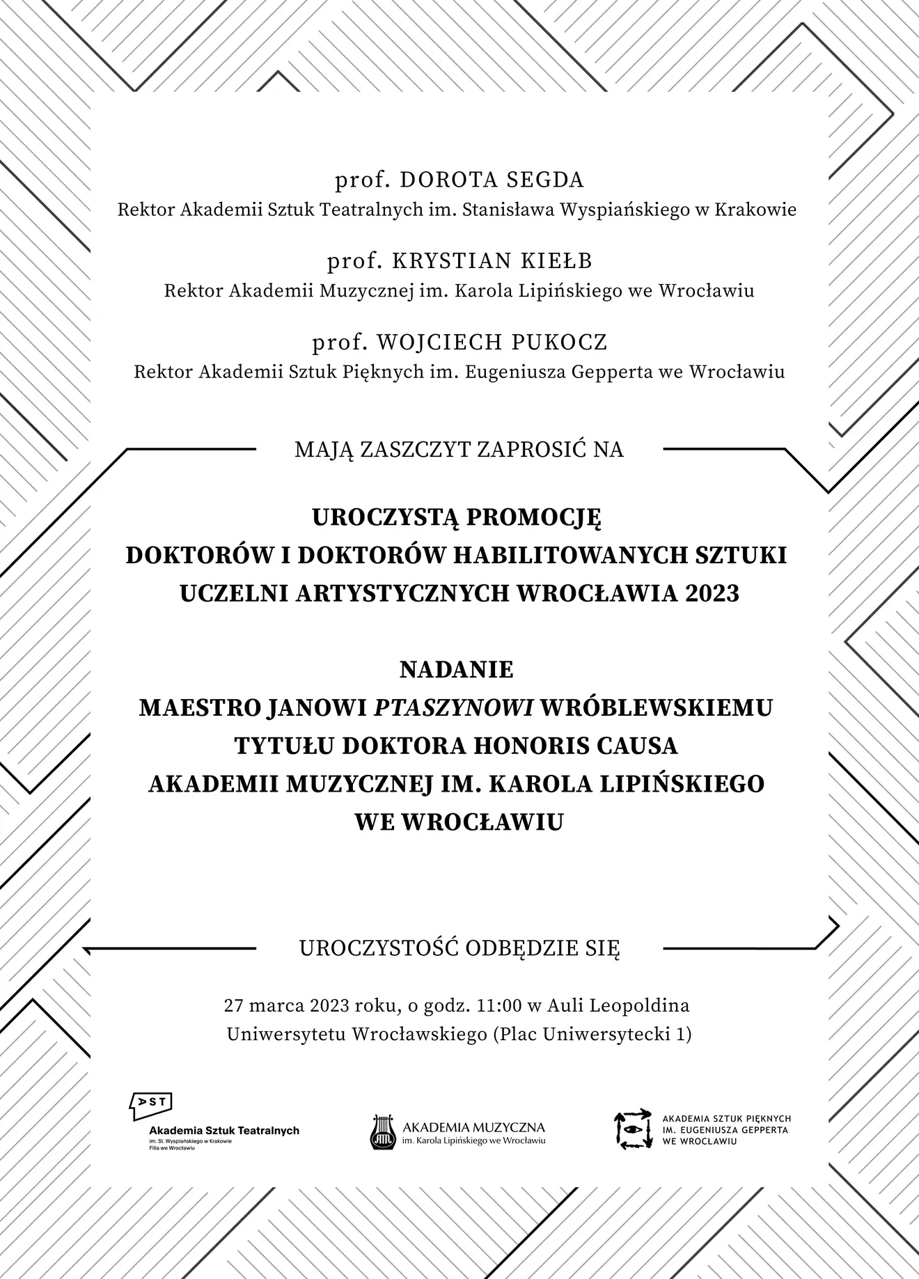27.03.2023Aula Leopoldina Uniwersytetu Wrocławskiego Pl. Uniwersytecki 1 Wrocław