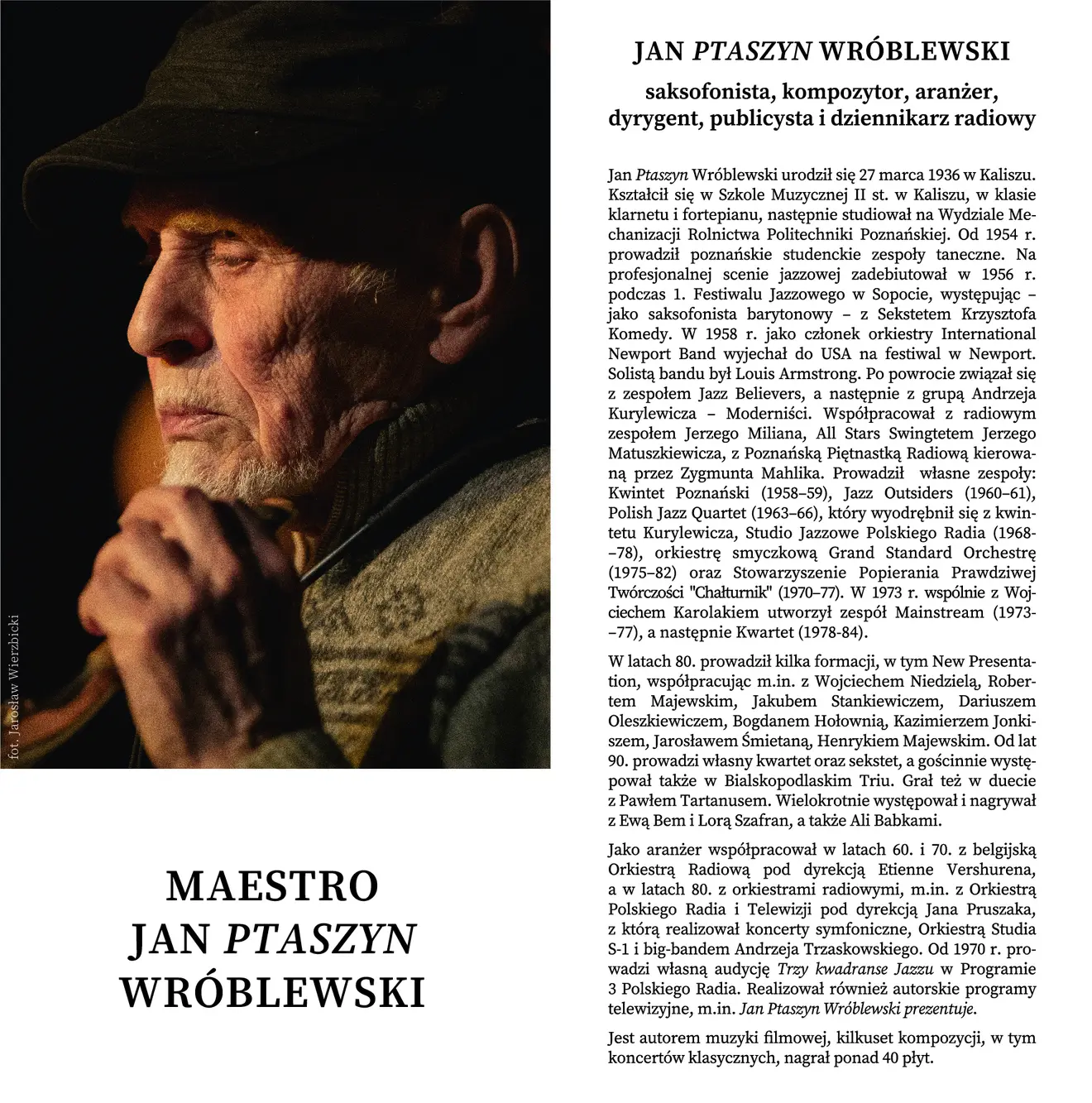 Uroczystość uświetnią utwory Jana Ptaszyna Wróblewskiego w wykonaniu Tomasz Wendt Trio, w składzie: