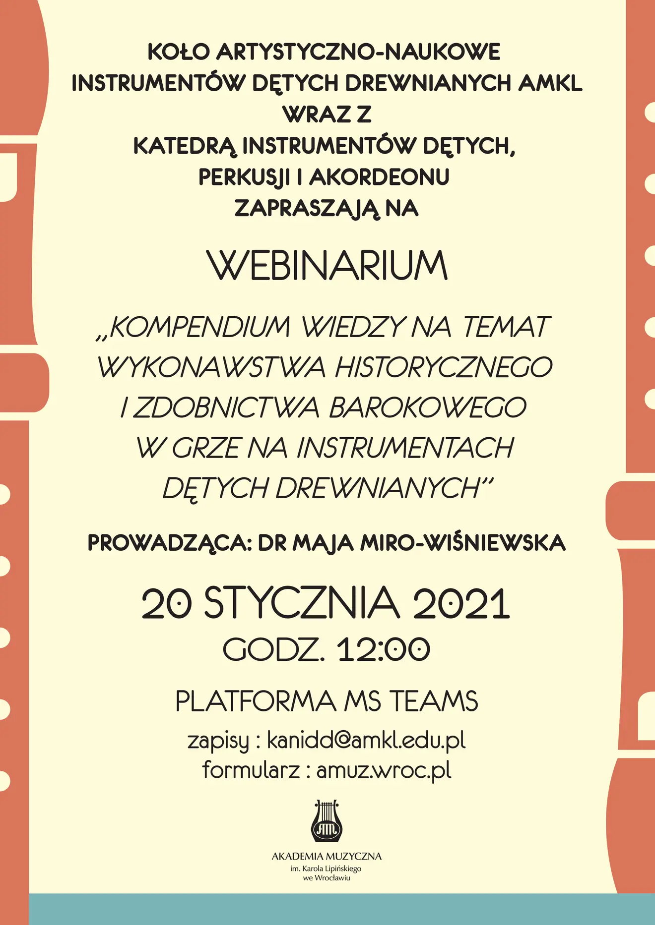 Webinarium z dr Mają Miro-Wiśniewską - "Kompendium wiedzy na temat wykonawstwa historycznego i zdobnictwa barokowego w grze na instrumentach dętych drewnianych