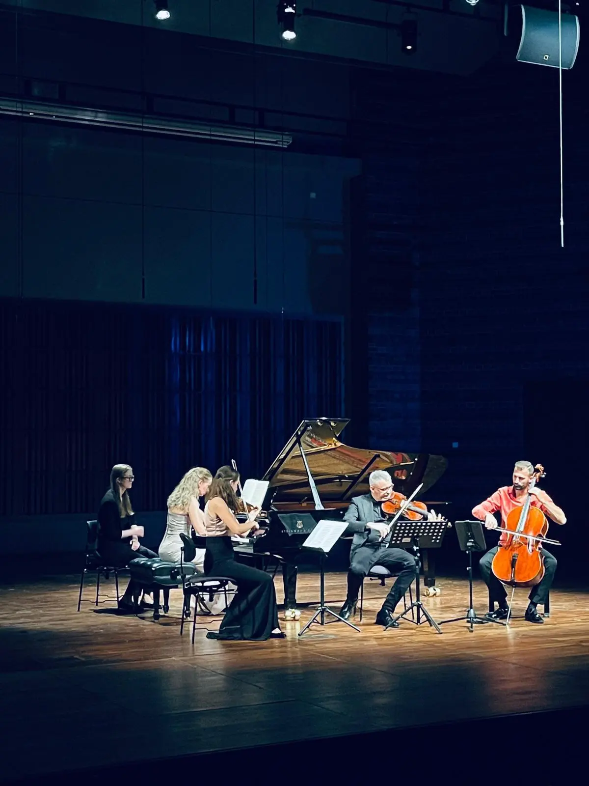 26.11.2024Katedra Kameralistyki oraz Katedra Instrumentów Smyczkowych miała przyjemność zaprosić na koncert z cyklu Wrocławskie Spotkania Muzyczne, który odbył się w dniu 26.11.2024 o godzinie 18:00 w Sali Koncertowej Akademii Muzycznej im. Karola Lipińskiego we Wrocławiu. Poniżej prezentujemy kilka zdjęć z tego koncertu.