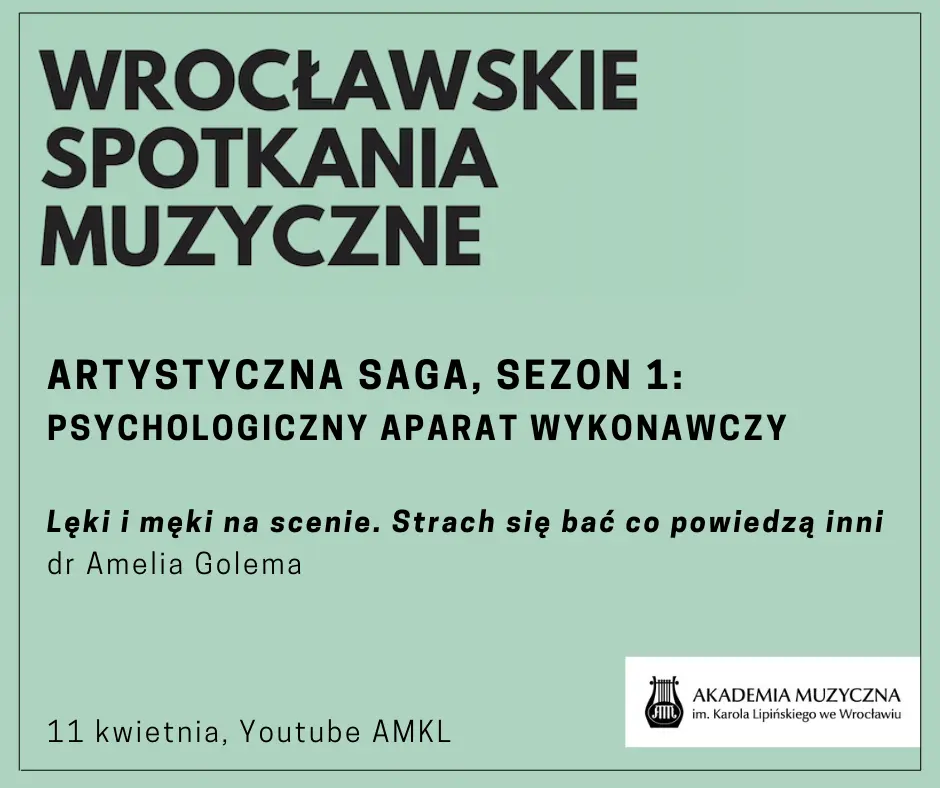 11.04.2022Katedra Instrumentów Smyczkowych zaprasza na cykl poniedziałkowych wykładów online poświęconych psychologicznym aspektom praktyki wykonawczej, organizowanych w ramach Wrocławskich Spotkań Muzycznych.