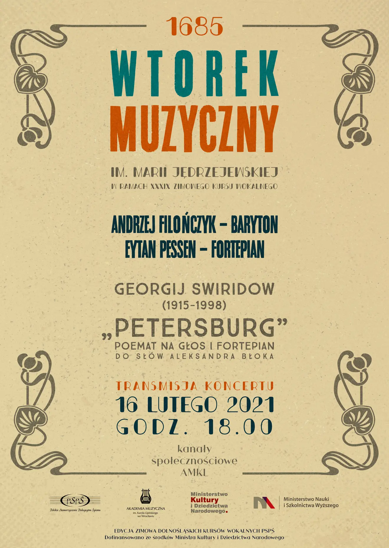 16.02.2021W Akademii Muzycznej został wznowiony cykl koncertów pt. "Wtorek Muzyczny", którego początki sięgają 1949 roku, a ostatnia edycja miała miejsce 7 lat temu – 18 lutego 2014 roku. Podczas wtorkowego koncertu usłyszymy Andrzeja Filończyka – solistę światowych scen operowych oraz znakomitego pianistę Eytan'a Pessena. Wydarzenie odbywa się w ramach XXXIX Zimowego Kursu Wokalnego.