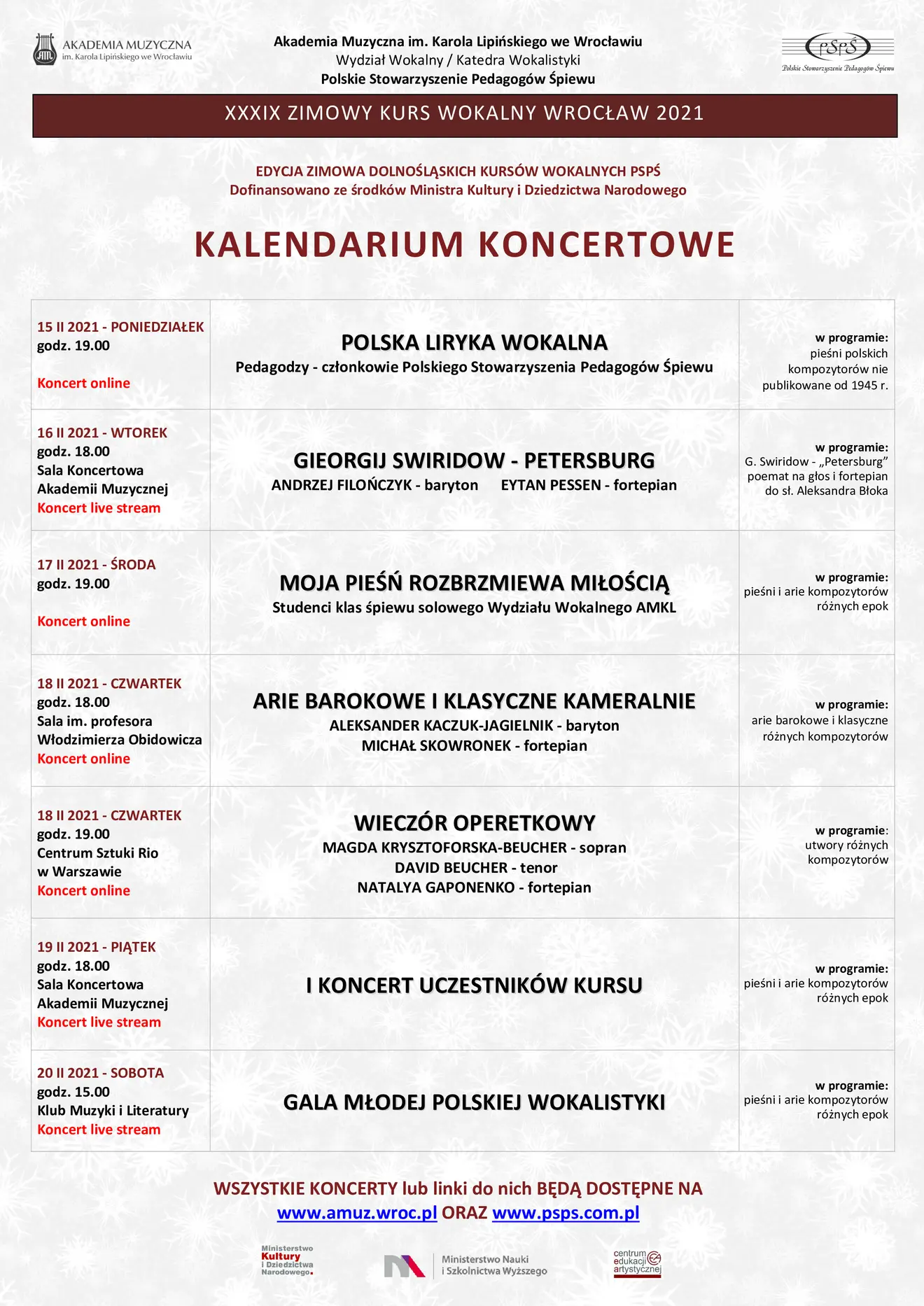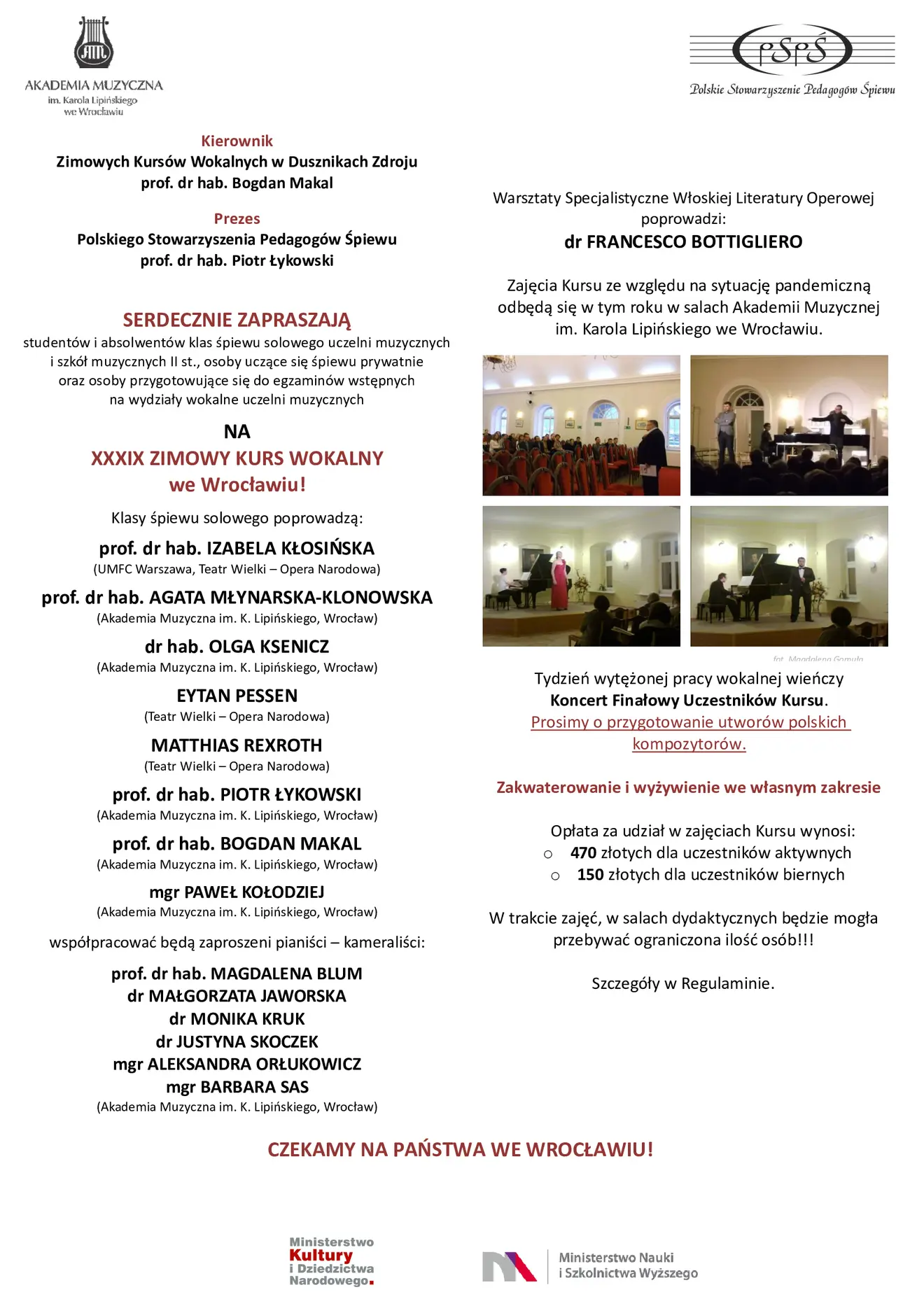 Regulamin oraz karty zgłoszenia dostępne są na stronie Polskiego Stowarzyszenia Pedagogów Śpiewu