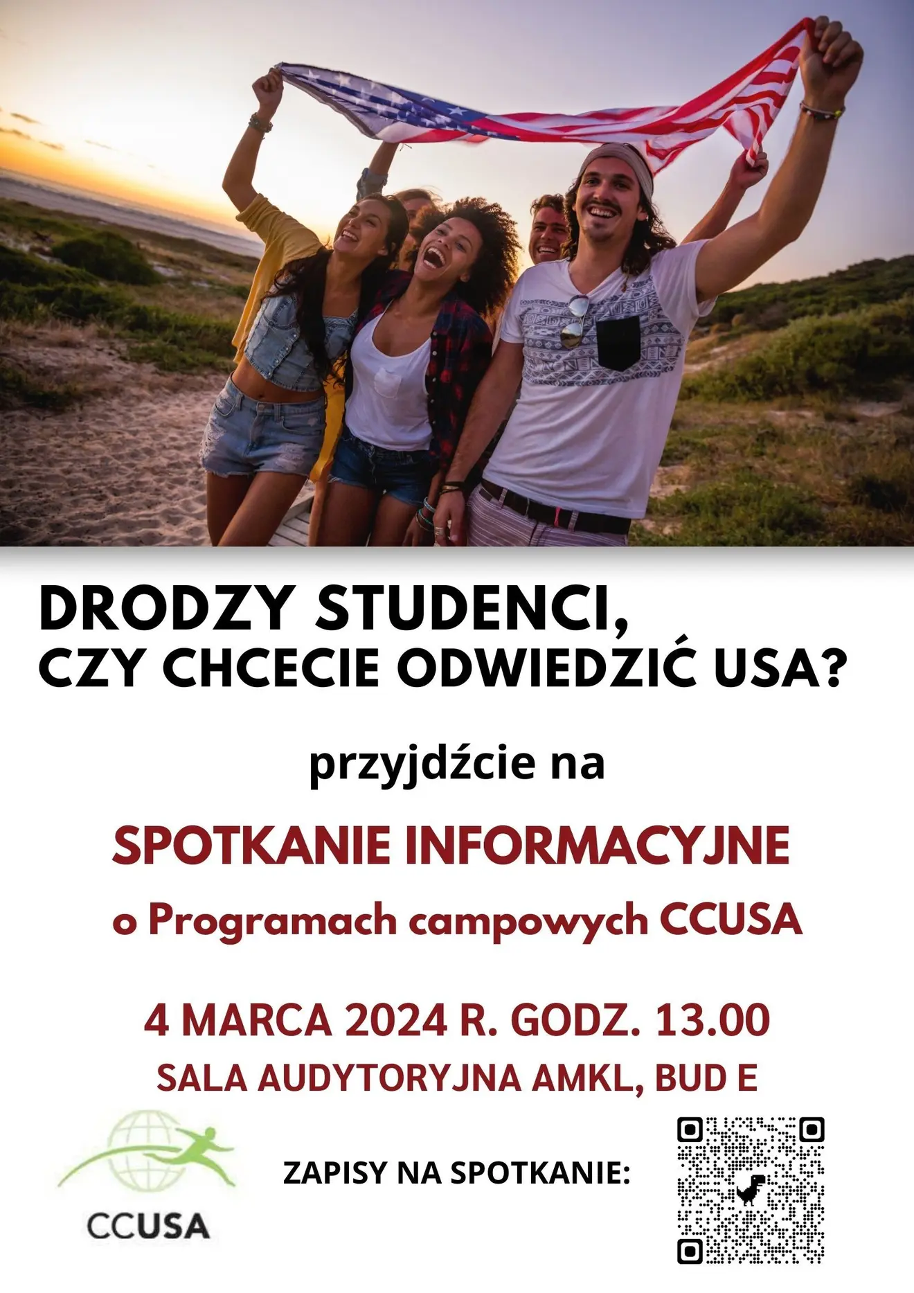 W najbliższy poniedziałek - 4 marca 2024 r. o godz. 13.00 w Sali Audytoryjnej AMKL odbędzie się spotkanie z przedstawicielami międzynarodowej organizacji CCUSA.