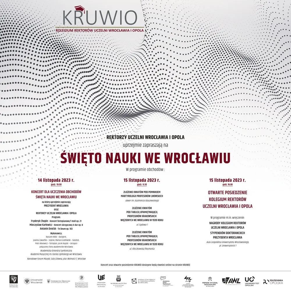 W dniach 14 oraz 15 listopada 2023 roku odbyły się uroczyste obchody Święta Nauki we Wrocławiu.
