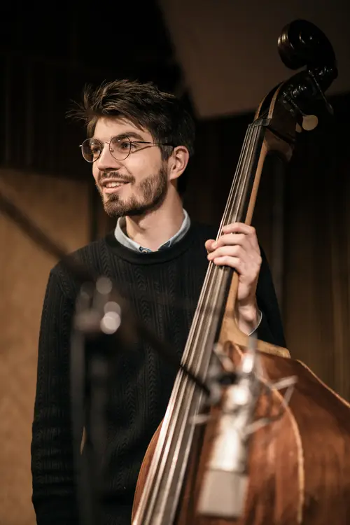 of Music in Katowice, which he completed in 2024 in the jazz double bass class of Dr Michał Barański.