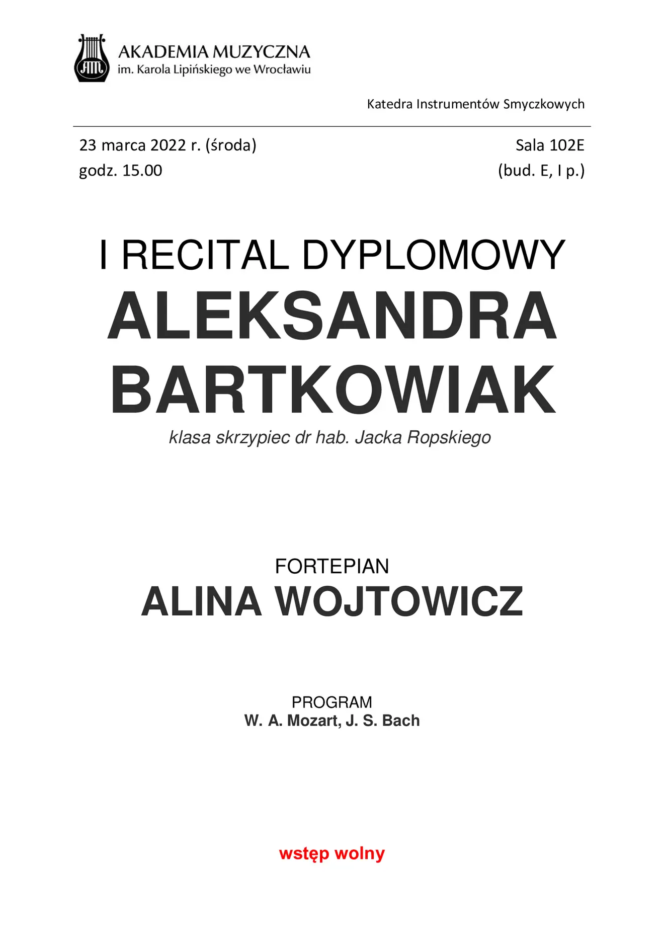 I recital dyplomowy Aleksandry Bartkowiak