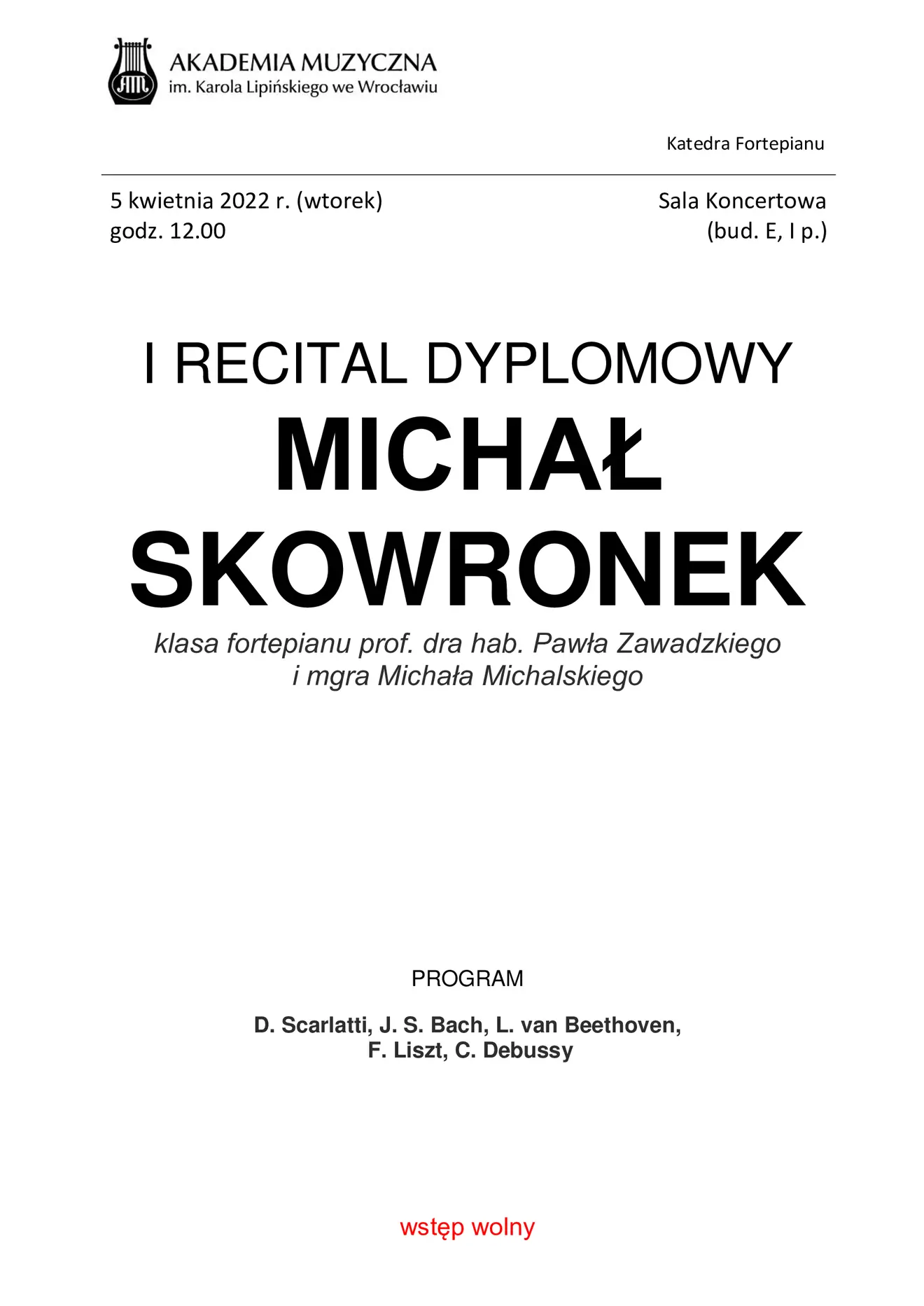I recital dyplomowy Michała Skowronka