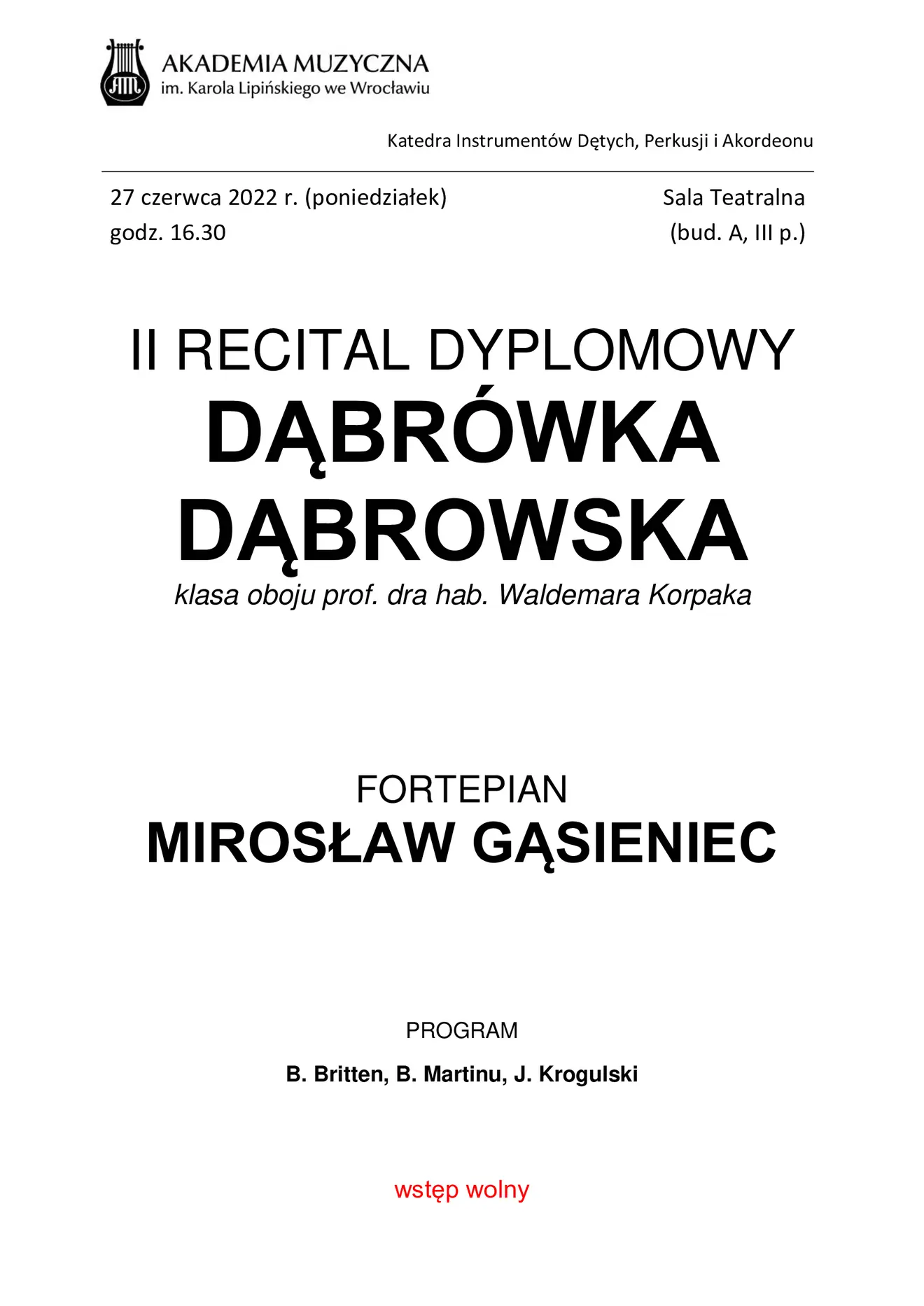 II recital dyplomowy Dąbrówki Dąbrowskiej