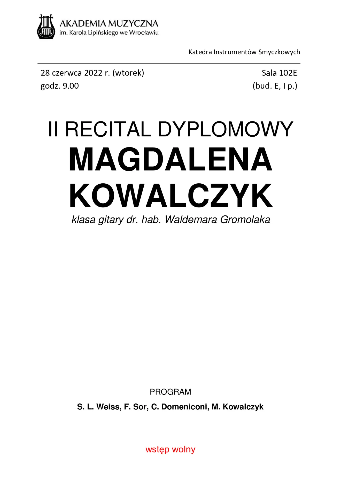II recital dyplomowy Magdaleny Kowalczyk