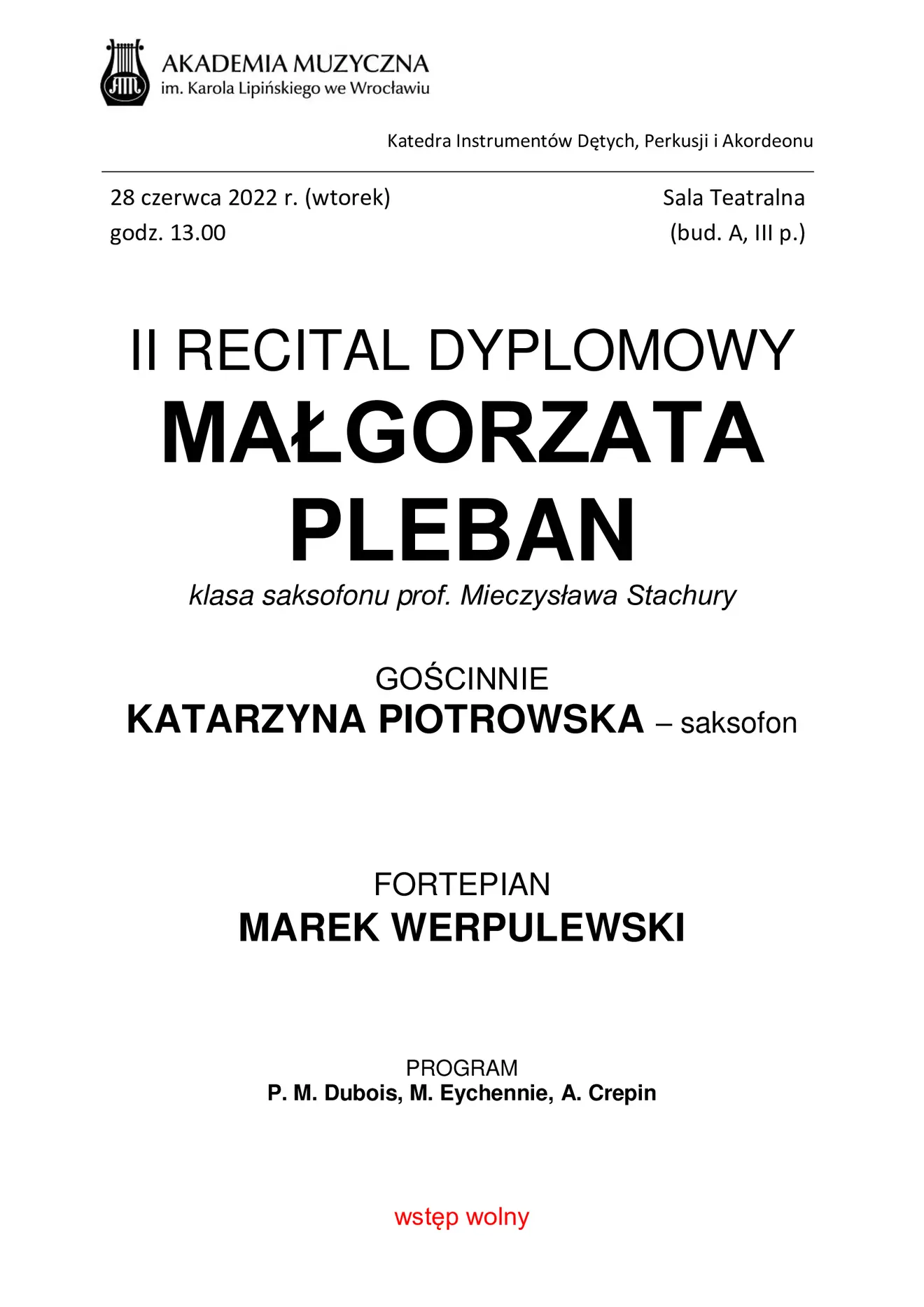 II recital dyplomowy Małgorzaty Pleban