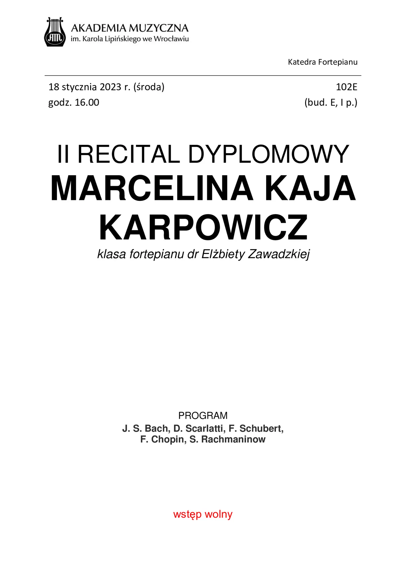 II recital dyplomowy Marceliny Kai Karpowicz